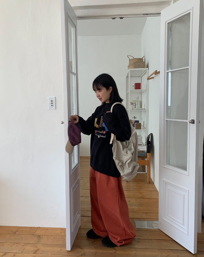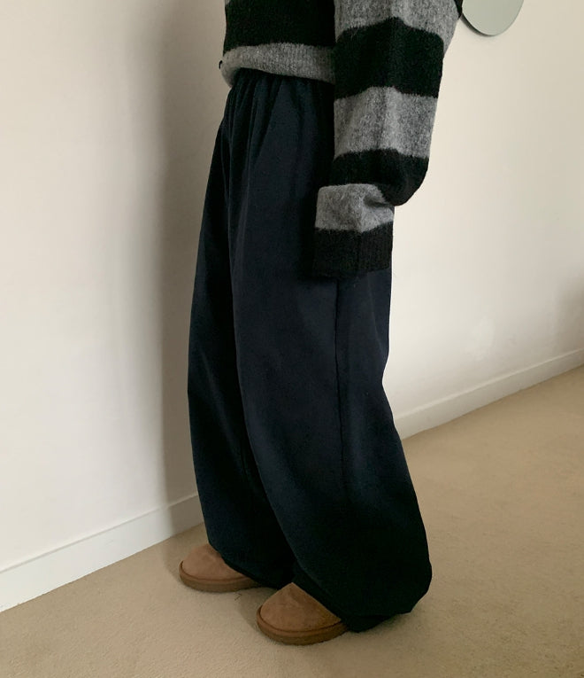 [BAONHAUS]ゴコブカラーコットンバンディングワイドピーチ起毛パンツ