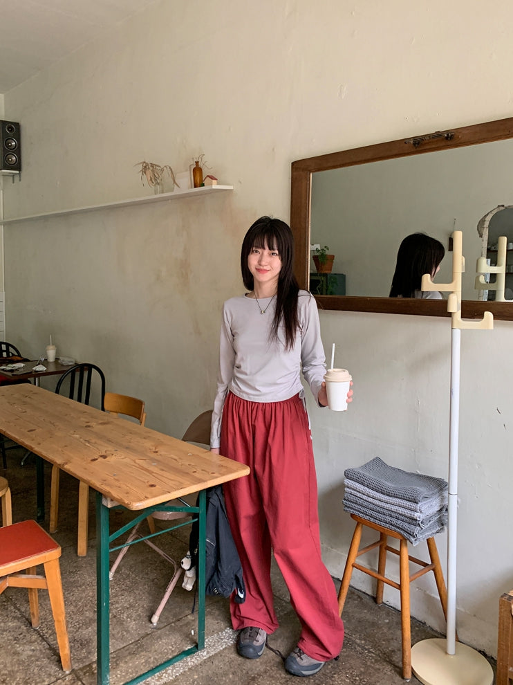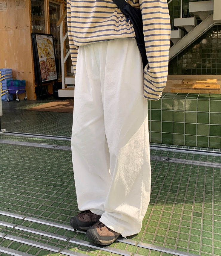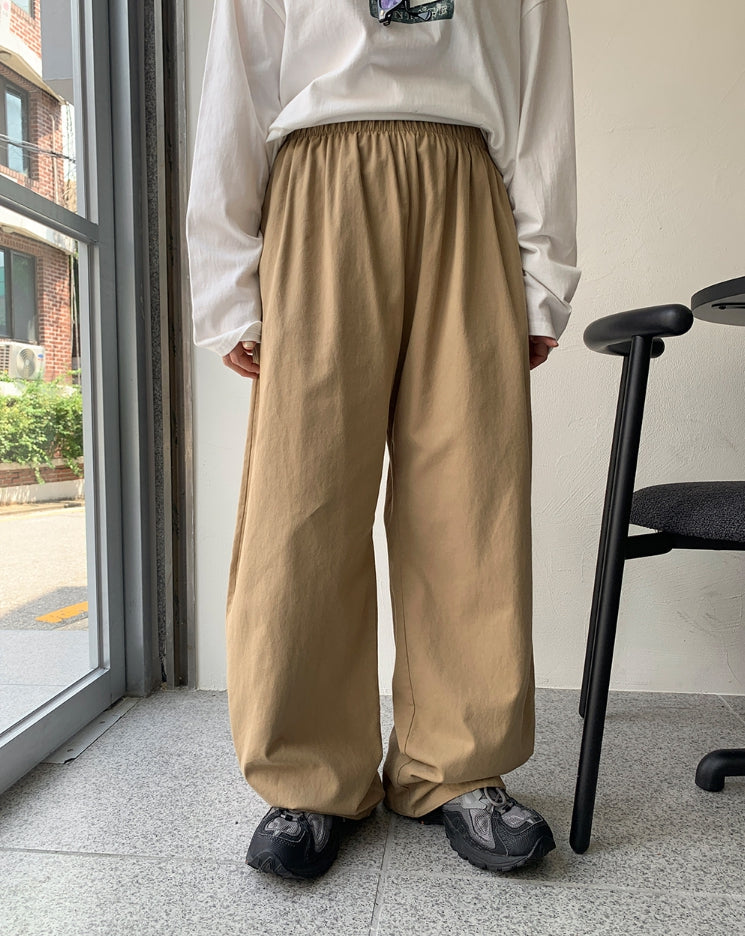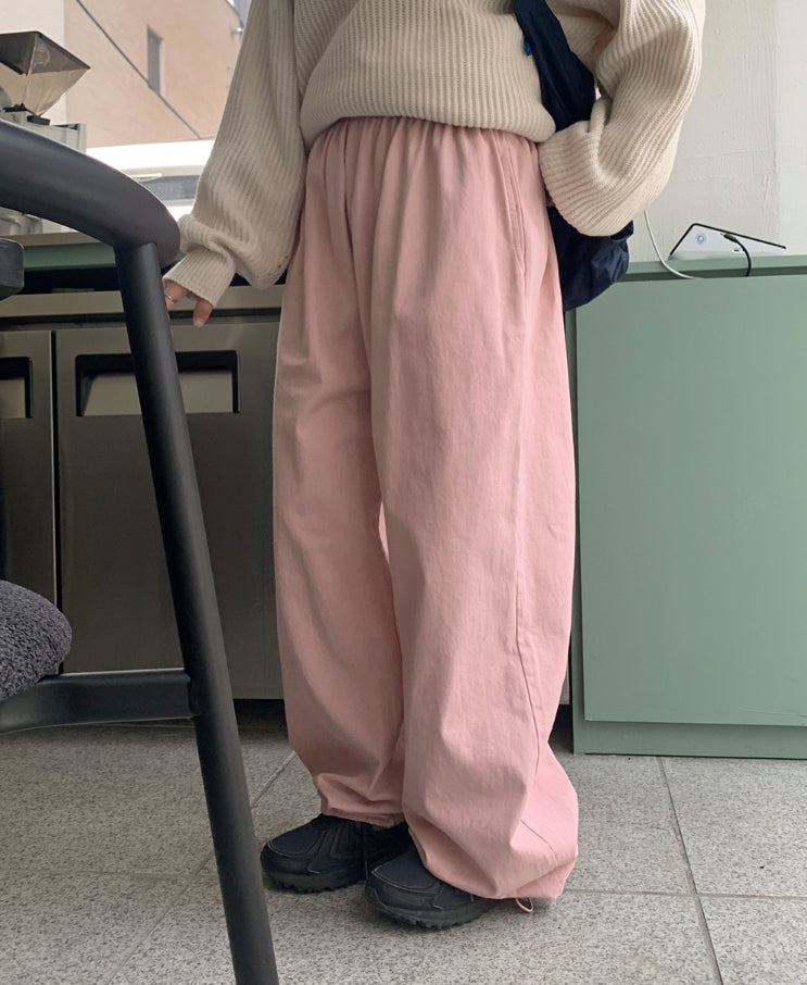 [BAONHAUS] Gokobu Color Cotton Banding Wide Pants