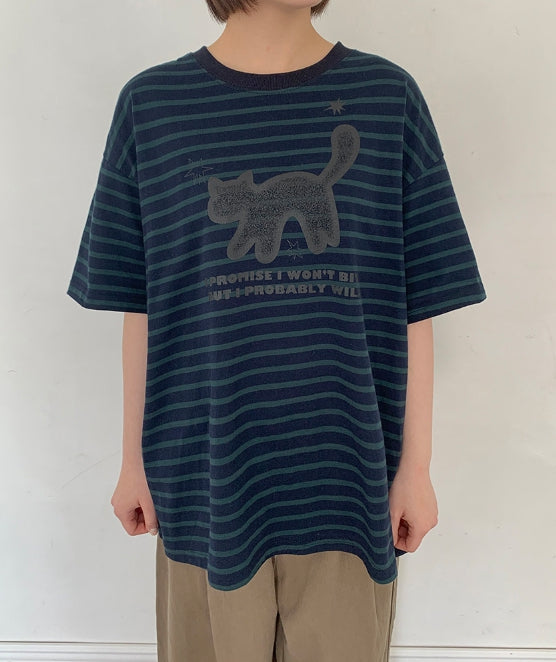 [BAONHAUS]ハヒルボーダーキャットオーバー半袖Tシャツ