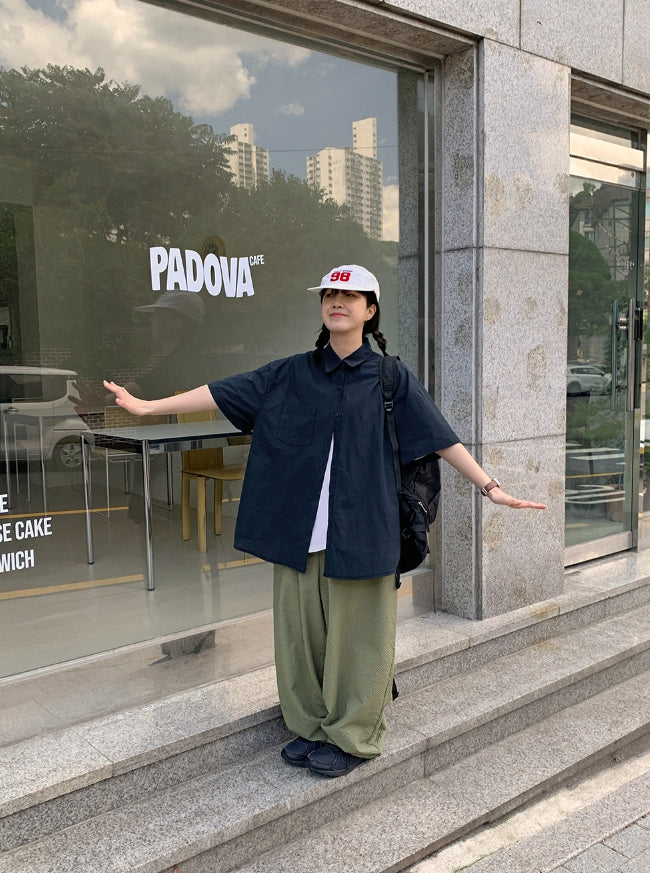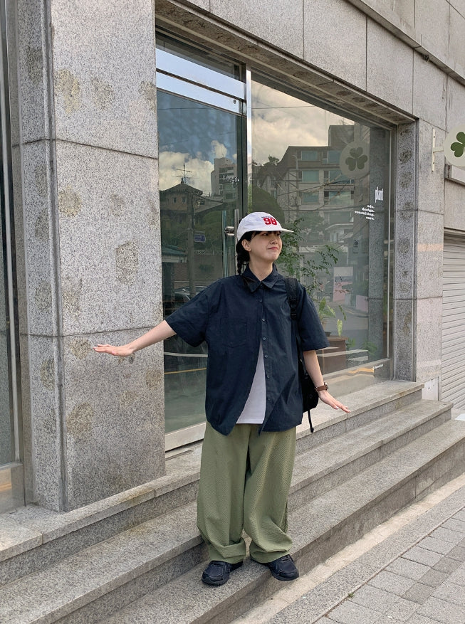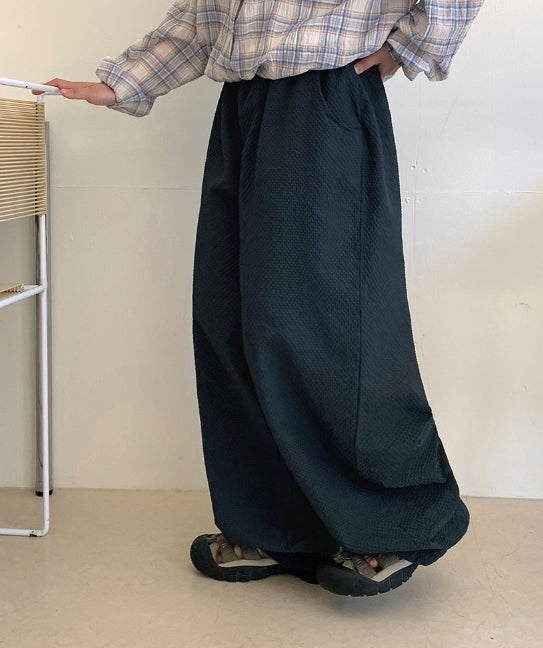 [BAONHAUS]ハカニチェックシアサッカーバルーンパンツ