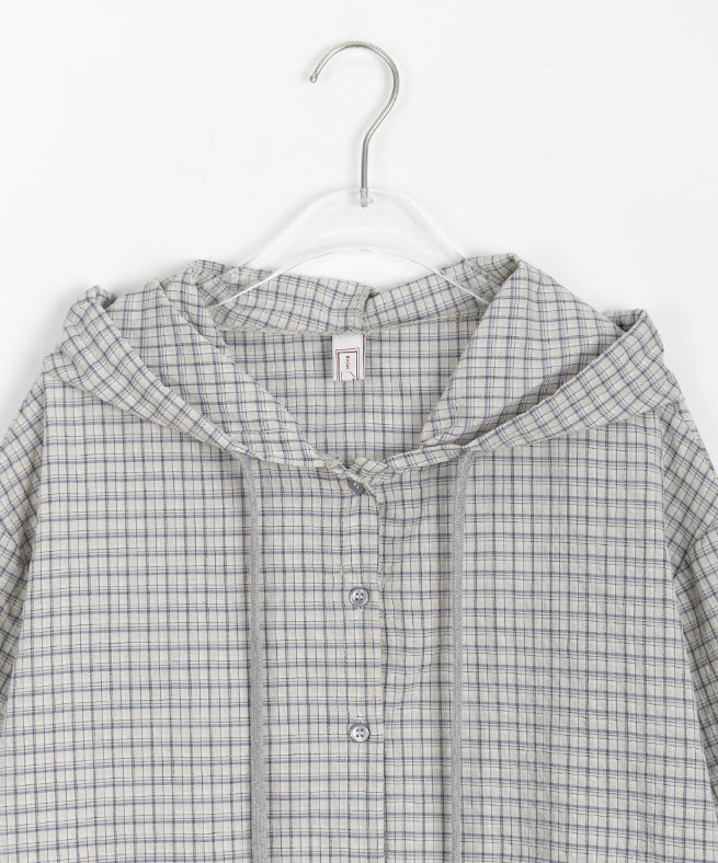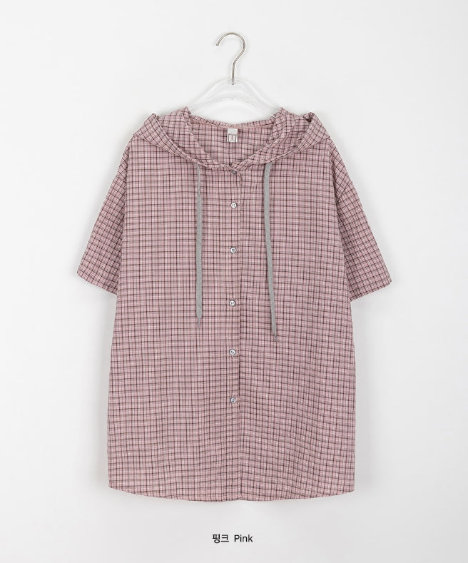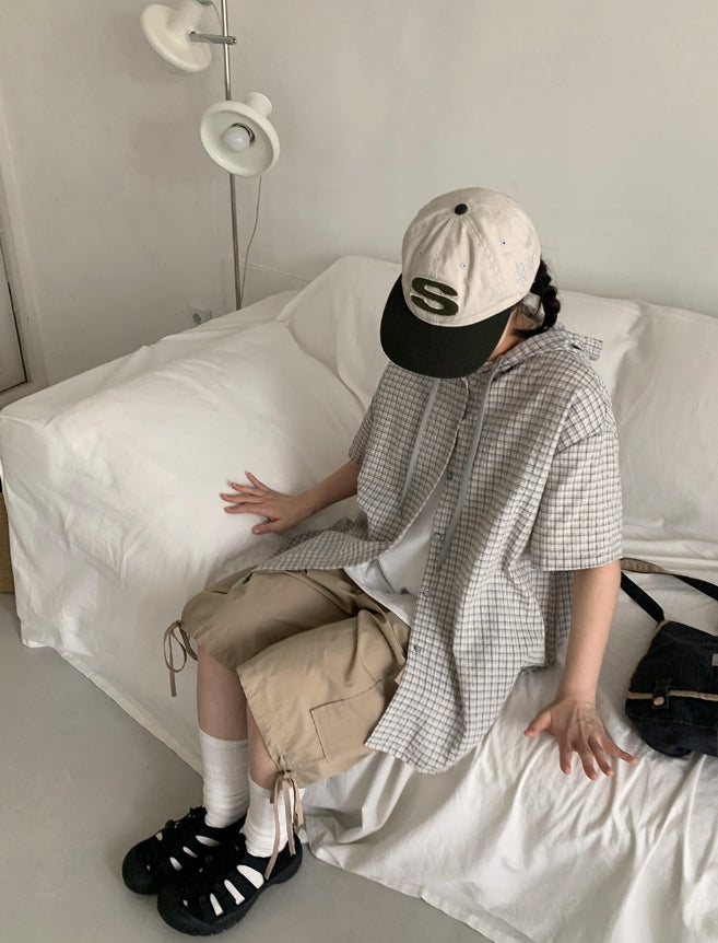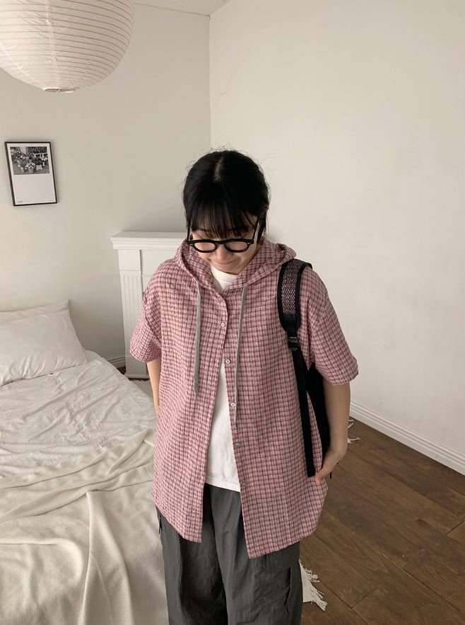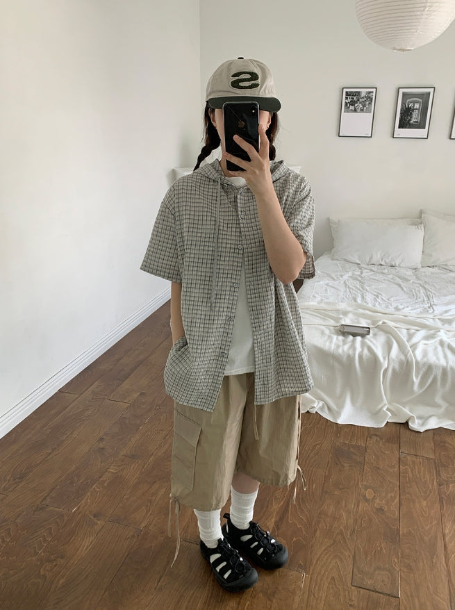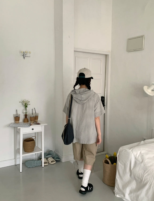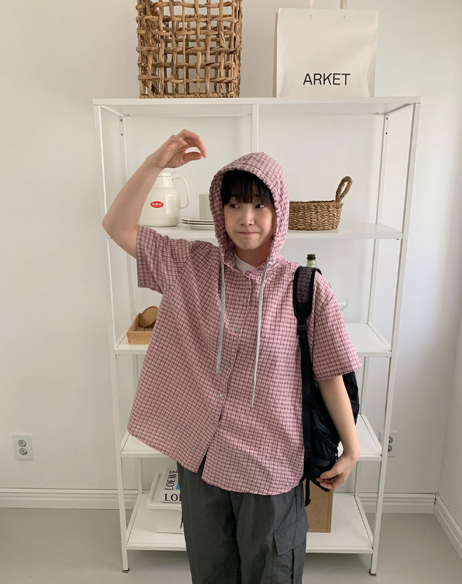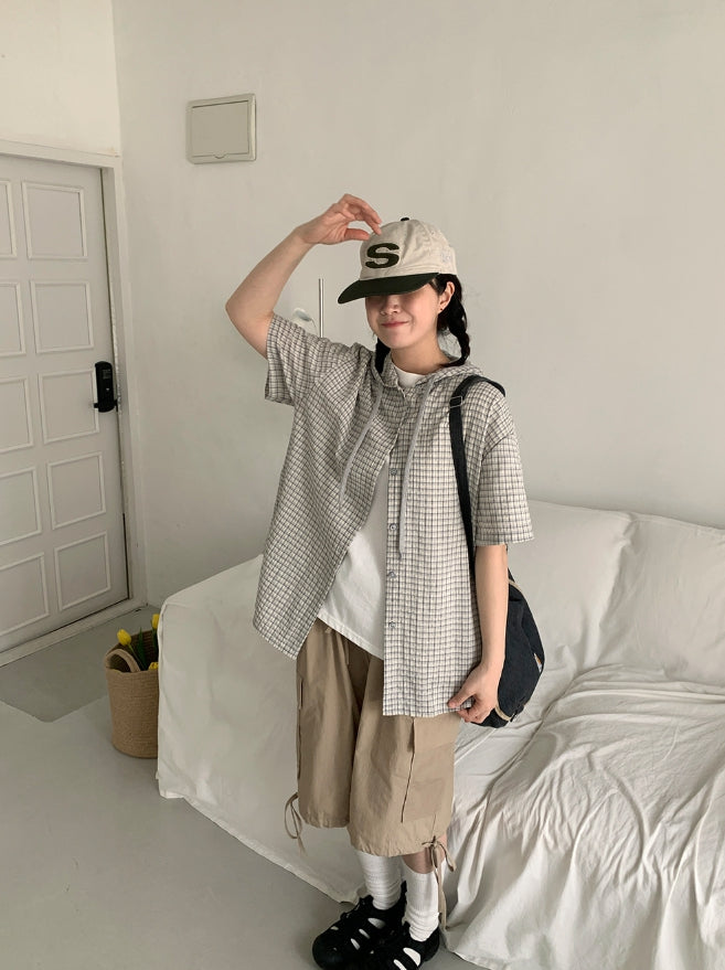 [BAONHAUS] Hapeura Check Hood Short Sleeve Shirt