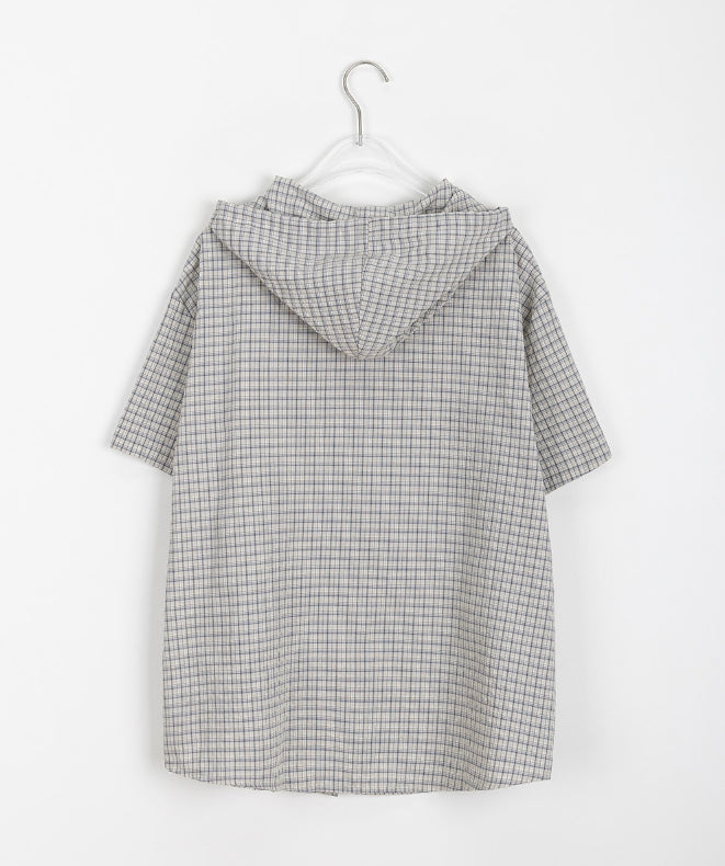 [BAONHAUS]ハプラチェックフード半袖シャツ