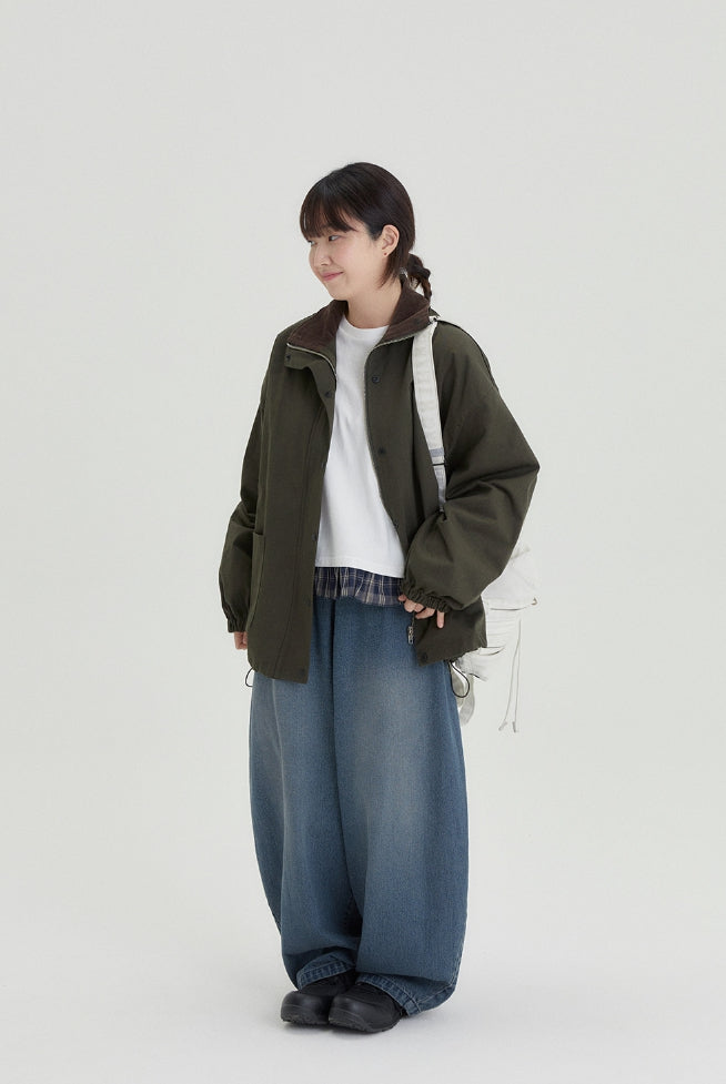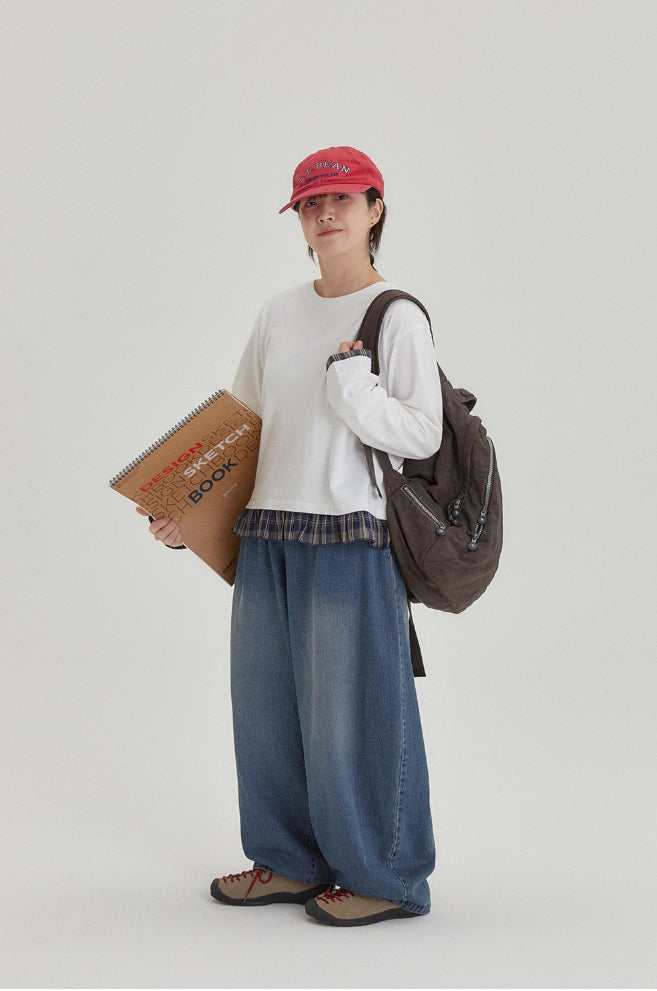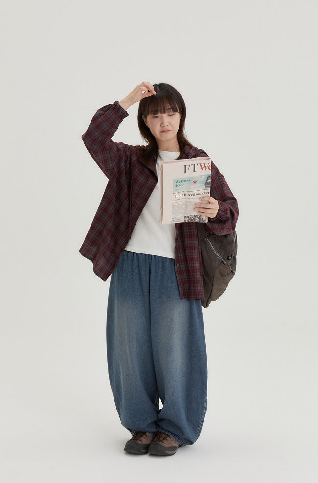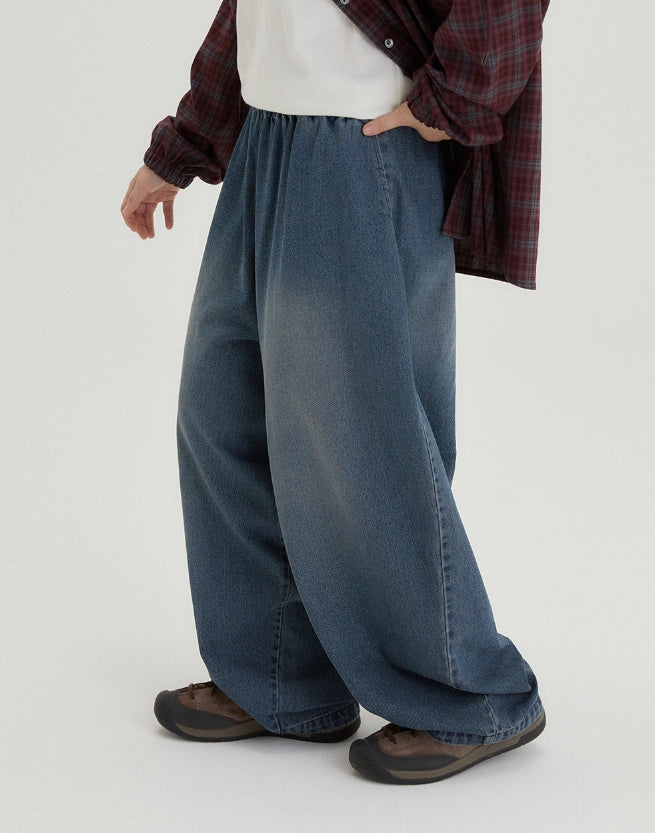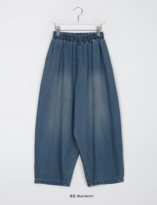 [BAONHAUS] Hebon Denim Banding Balloon Wide Pants