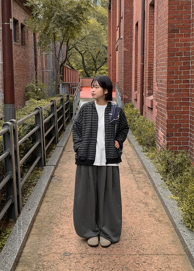 [BAONHAUS] Hicket Pintuck Banding Balloon Wide Pants