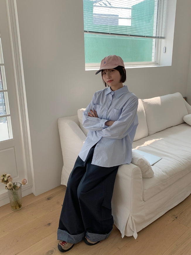 [BAONHAUS]ヒネンドットカラーロールアップコットンワイドパンツ