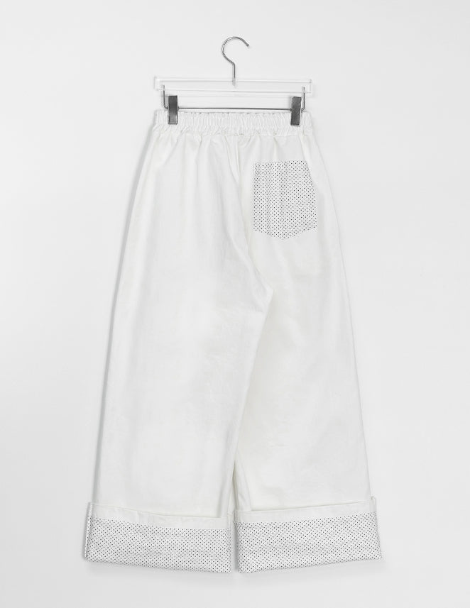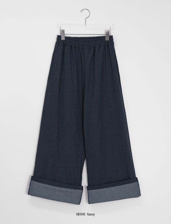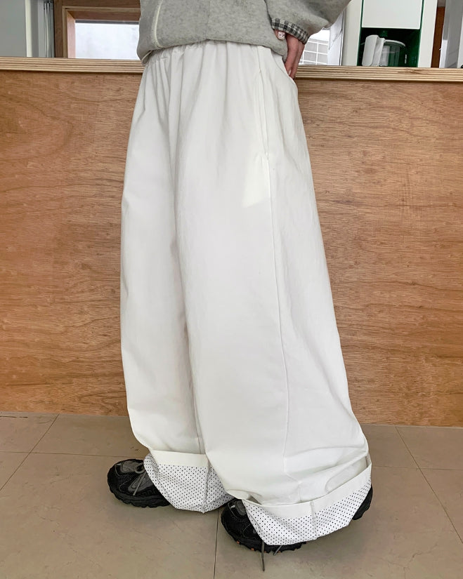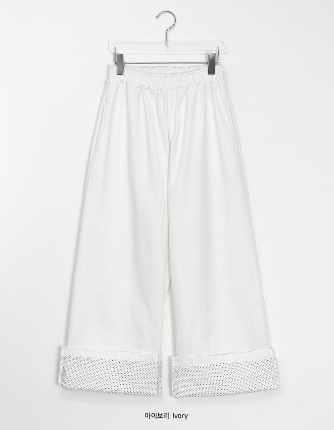 [BAONHAUS] Hinen Dot Color Matching Roll-up Cotton Wide Pants