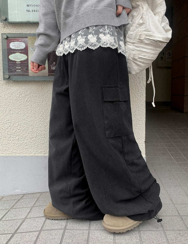 [BAONHAUS]カンシコーデュロイバンディングストリングカーゴパンツ