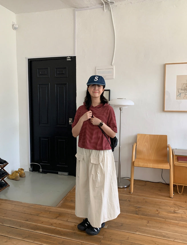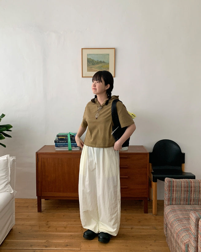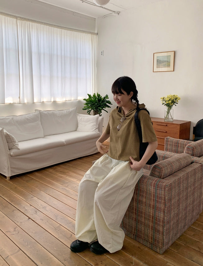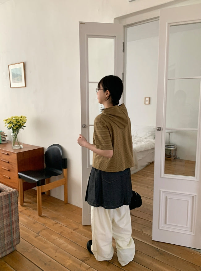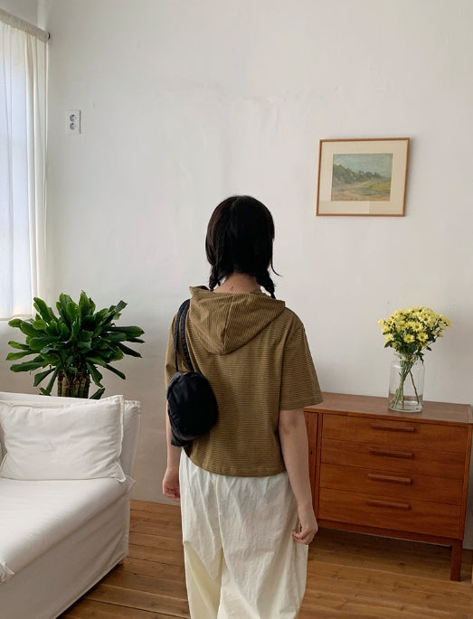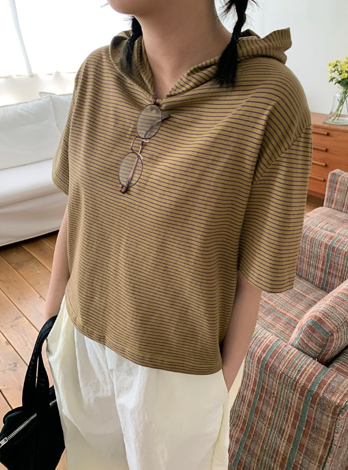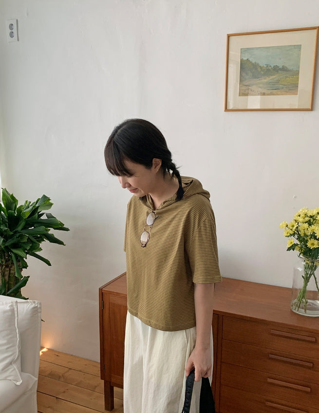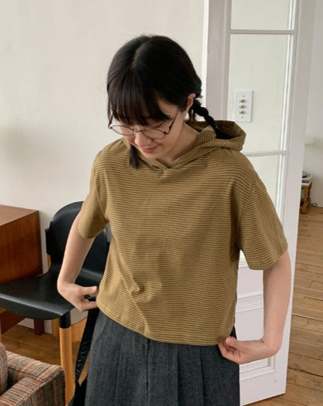 [BAONHAUS] Kerib Stripe Short Sleeve Hood Tee