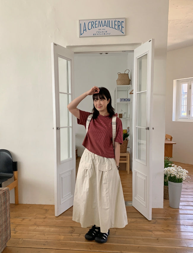 [BAONHAUS]ケリーブストライプ半袖フードTシャツ