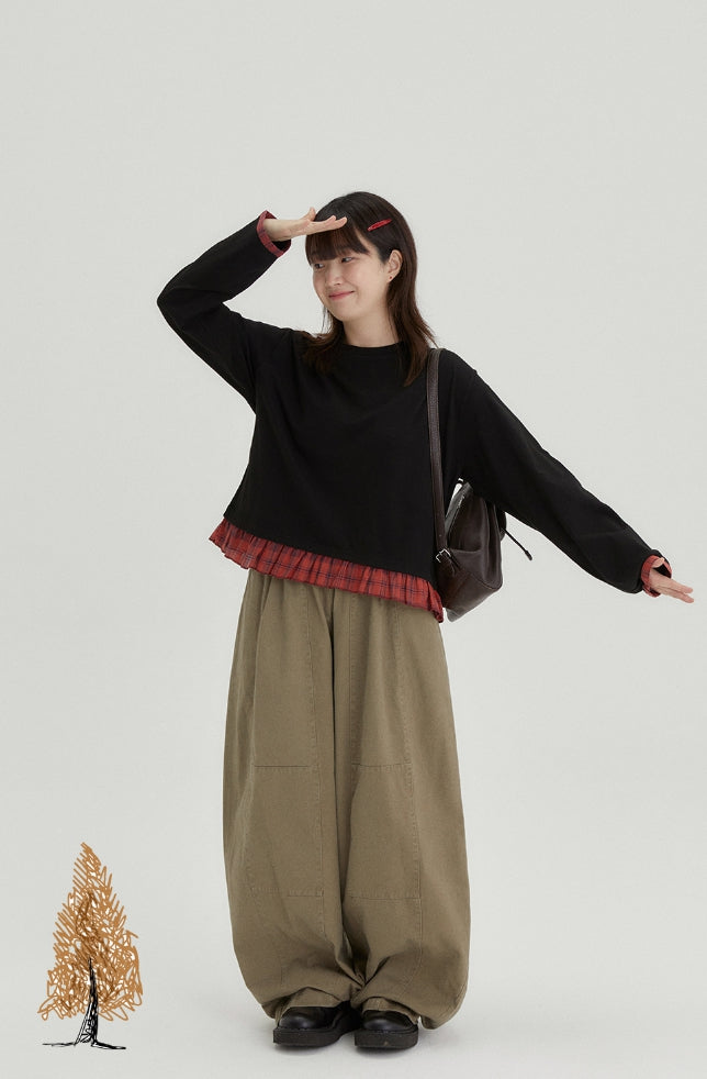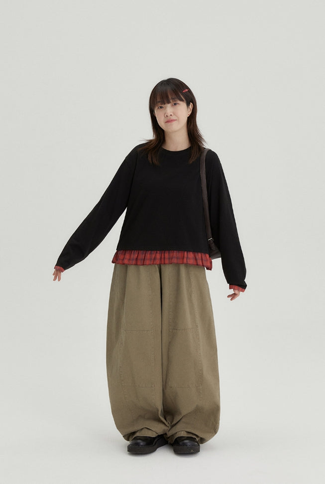 [BAONHAUS] キンプピグメントバンディングワイドバルーンパンツ