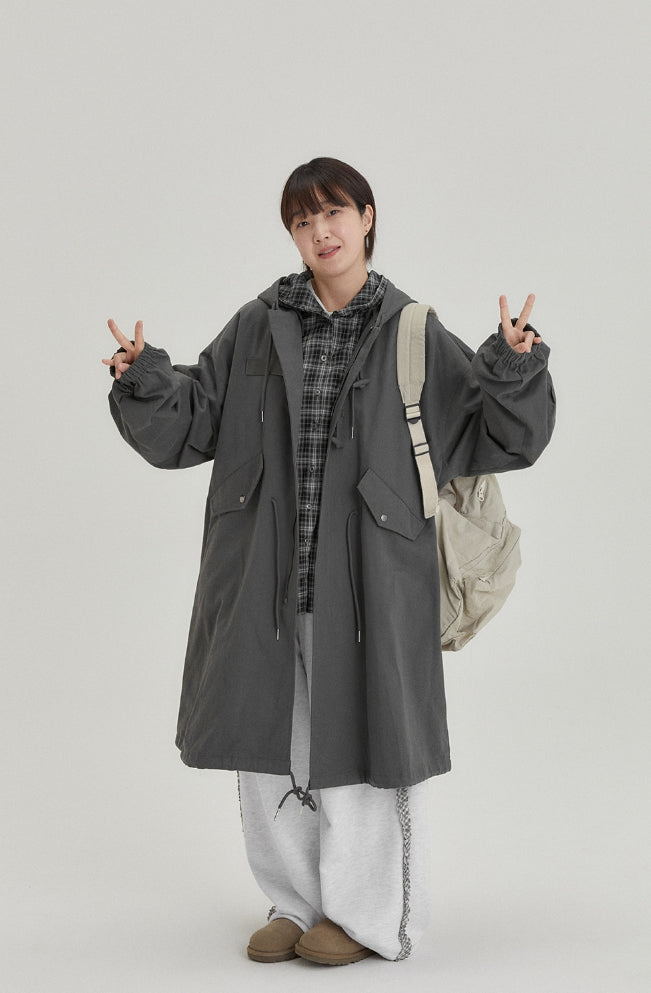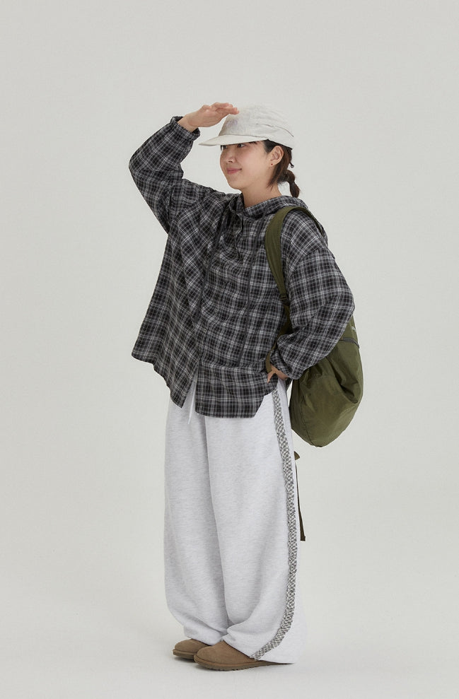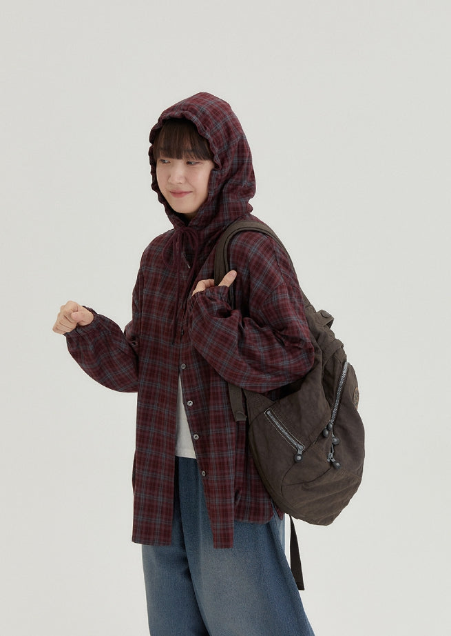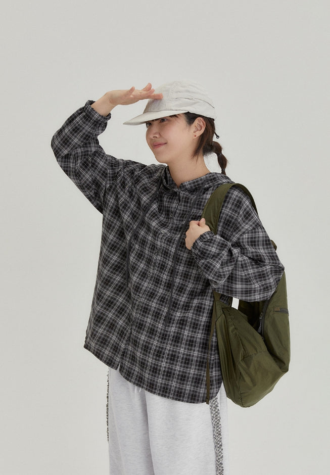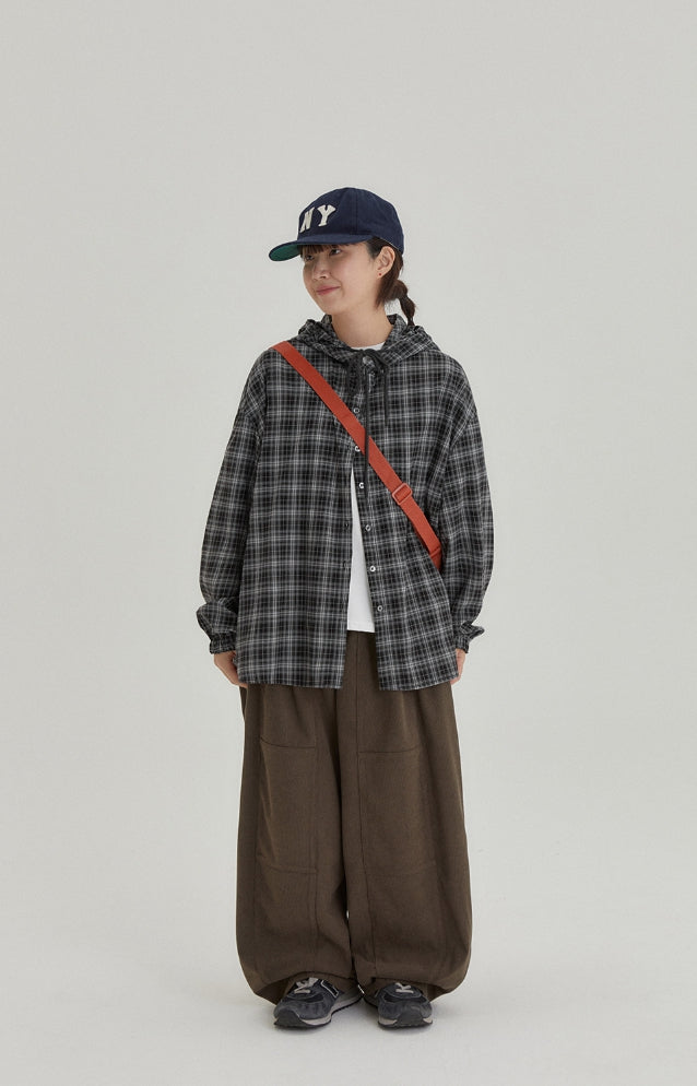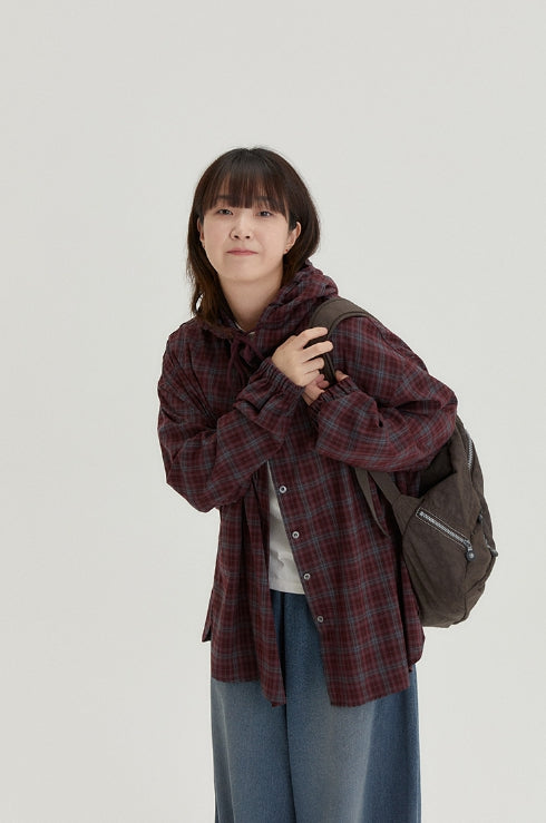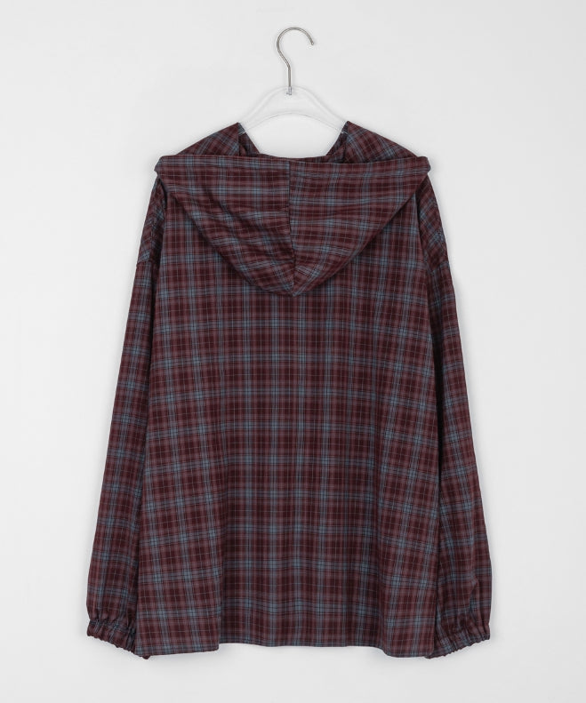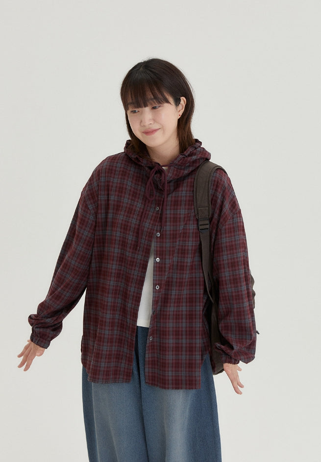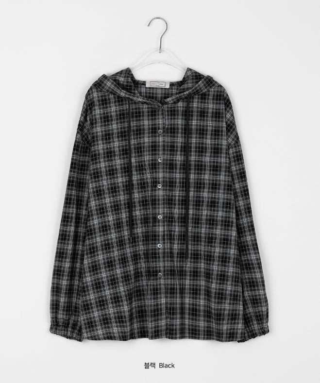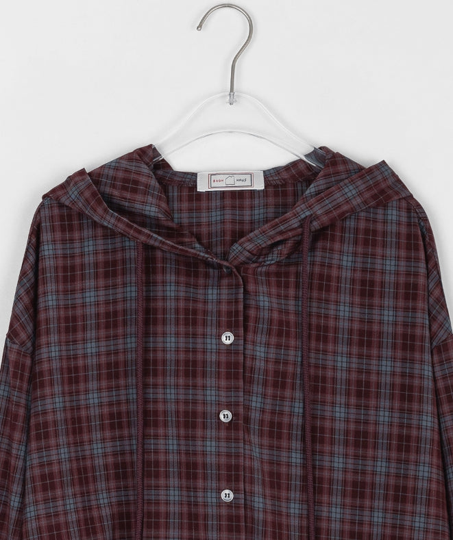 [BAONHAUS] Kitket Check Over Hood Shirt