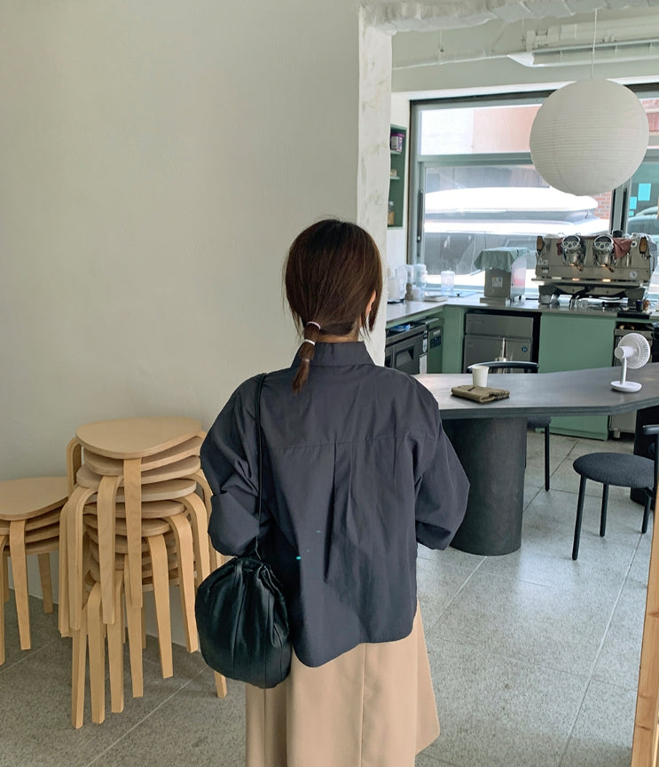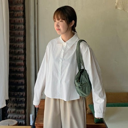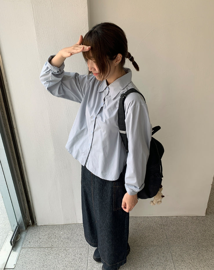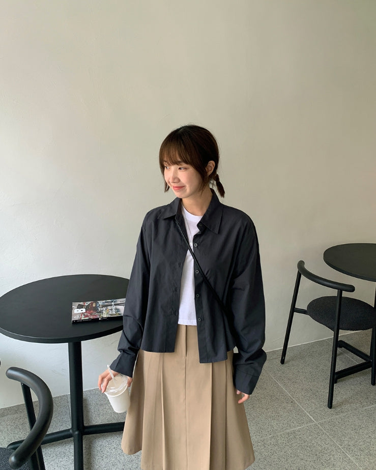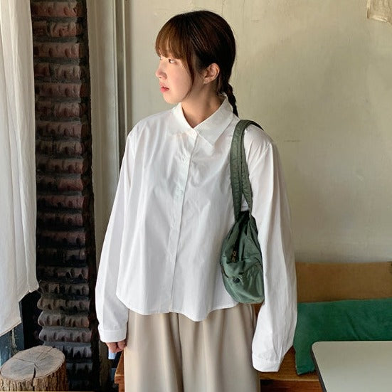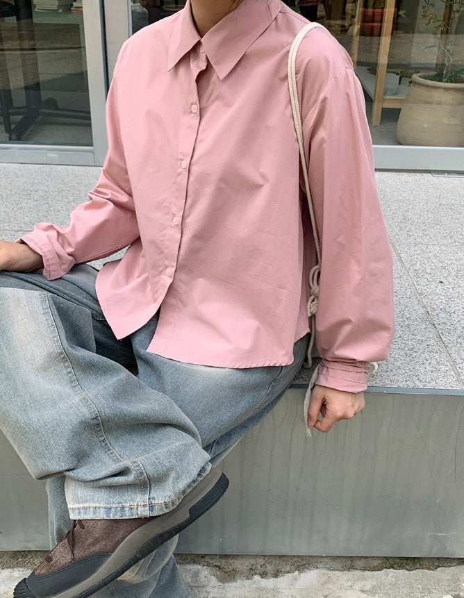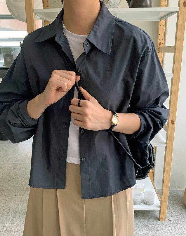 [BAONHAUS] Knob Cotton Crop Long Sleeve Shirt