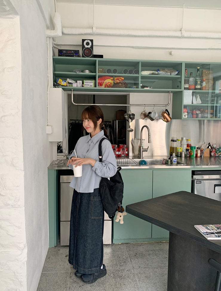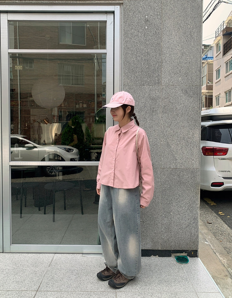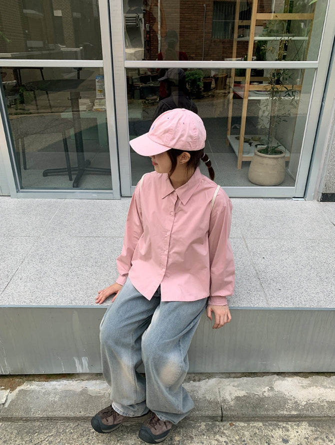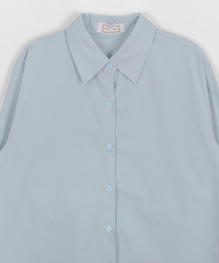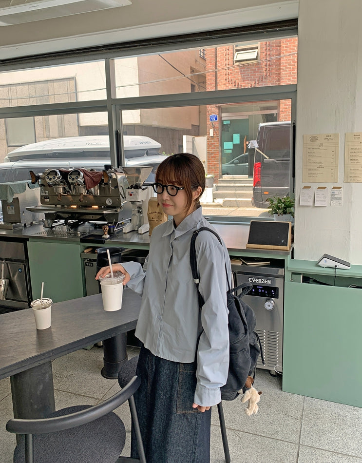 [BAONHAUS] Knob Cotton Crop Long Sleeve Shirt