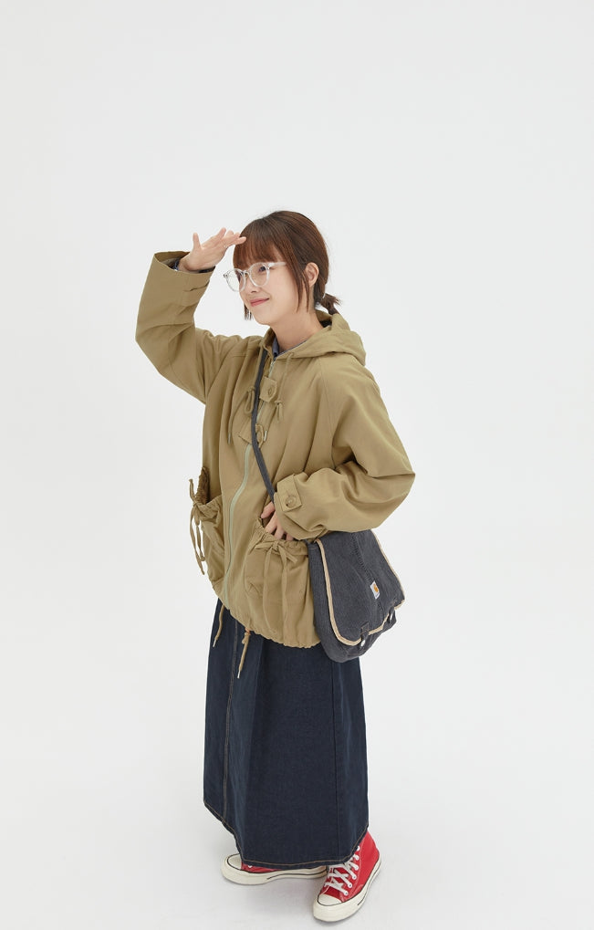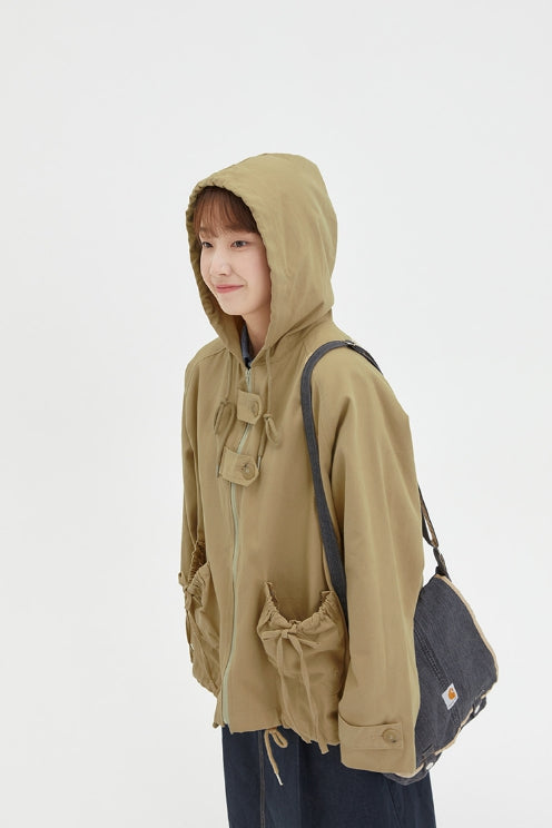 [BAONHAUS]クニンドリボンポケットコットンフードジャケット