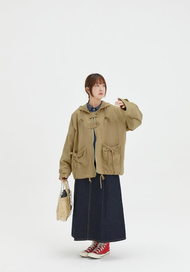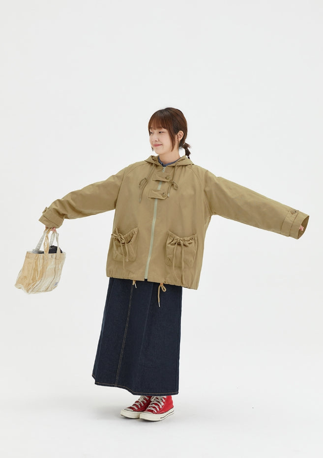 [BAONHAUS] Kuninged ribbon pocket cotton hood jacket