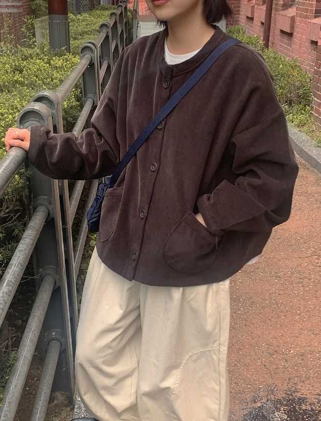 [BAONHAUS] Kyoshi Pocket Corduroy Round Cardigan