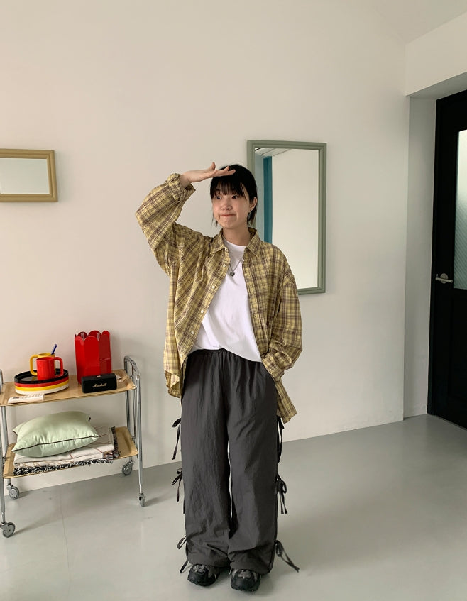 [BAONHAUS] Lubena Nylon Ribbon Banding Pants