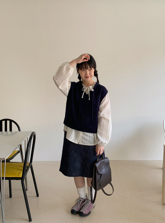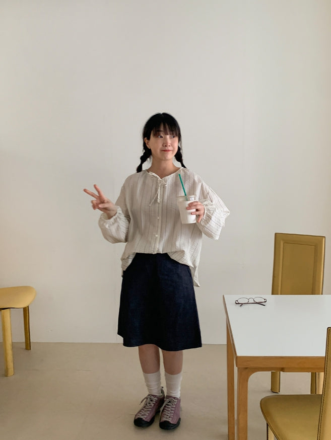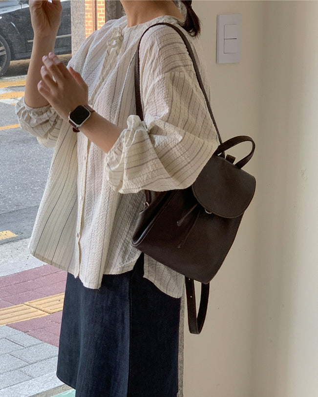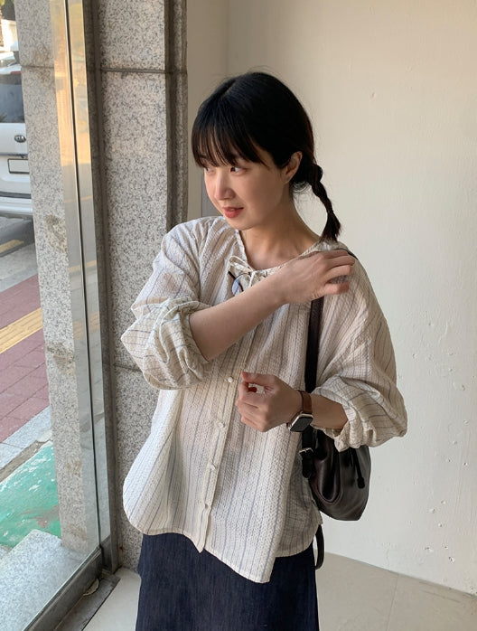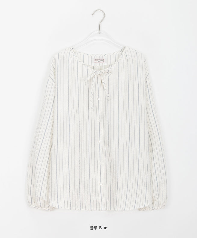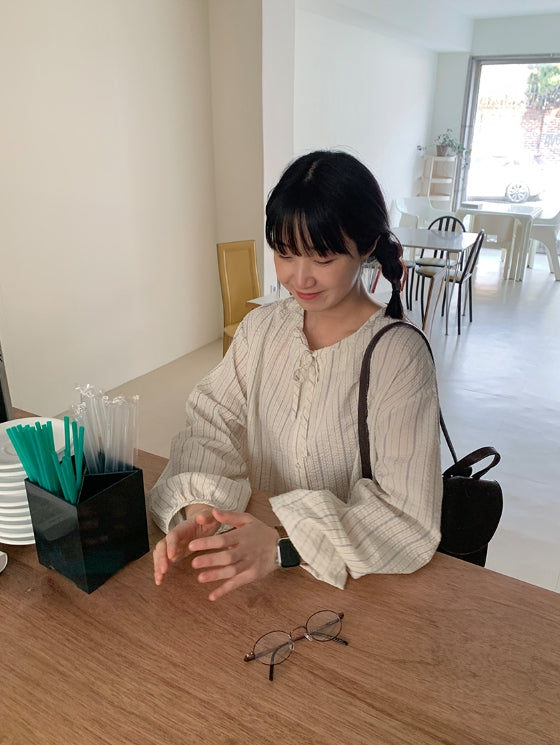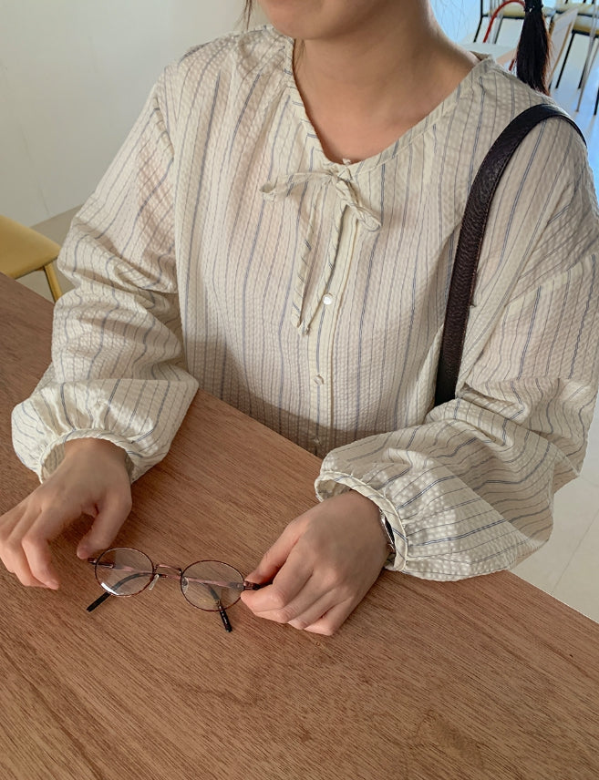 [BAONHAUS] Lulubo Shirring Round Stripe Blouse