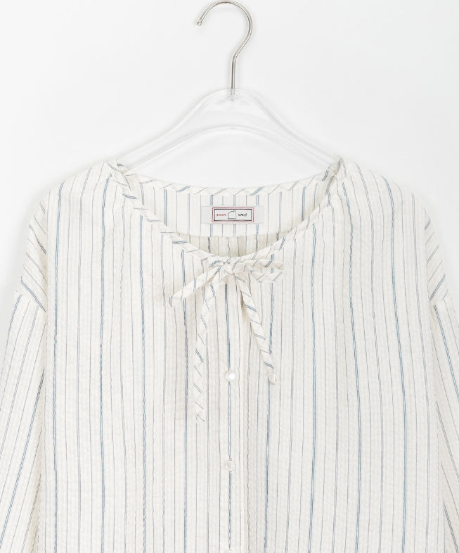 [BAONHAUS]ルルボーシャーリングラウンドストライプブラウス