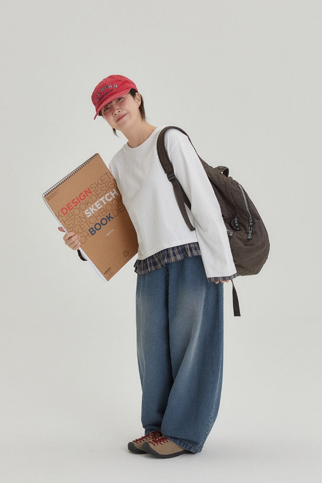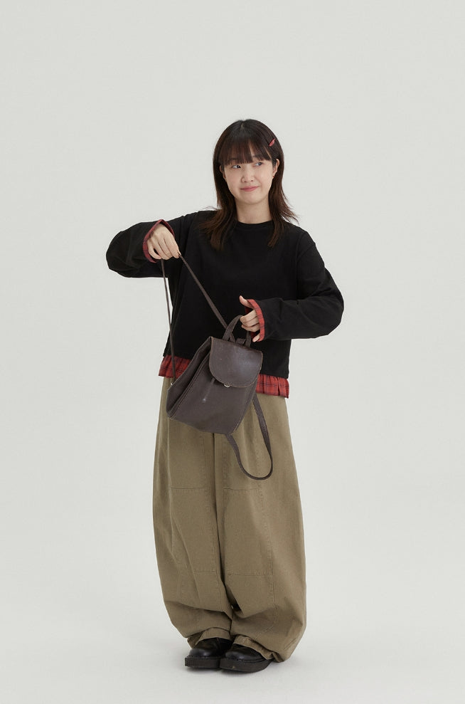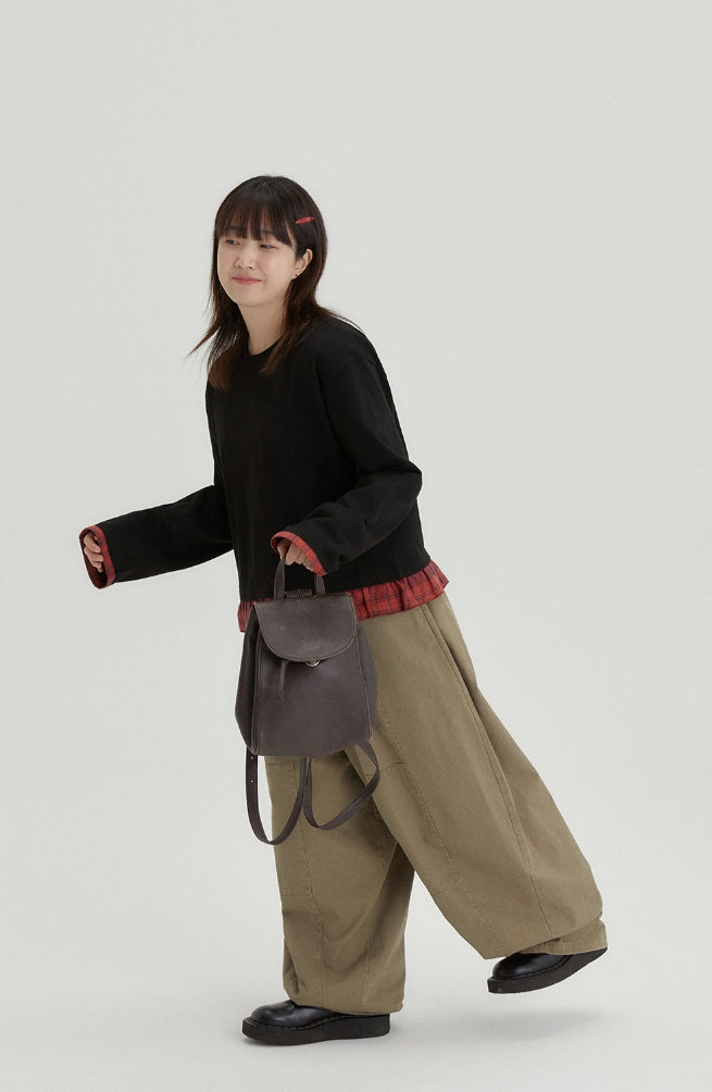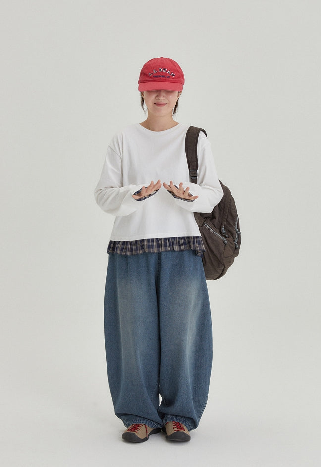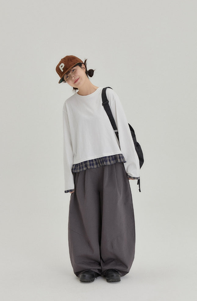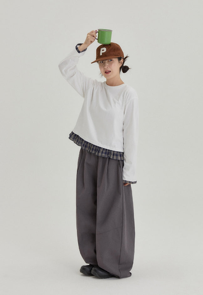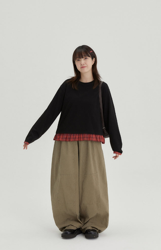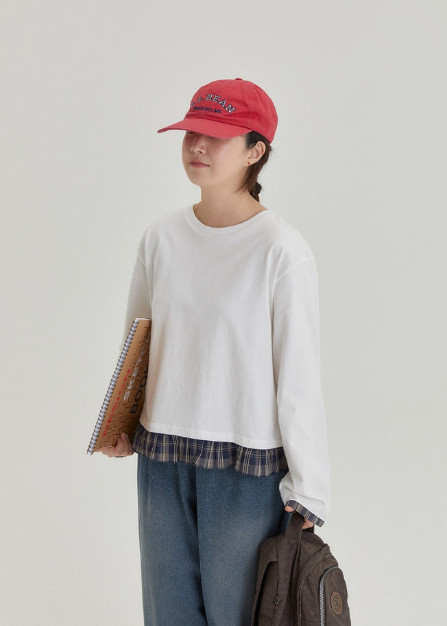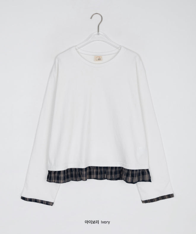 [BAONHAUS] Mebeuni Check Frill Layered Long Sleeve Tee