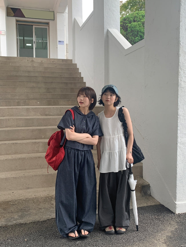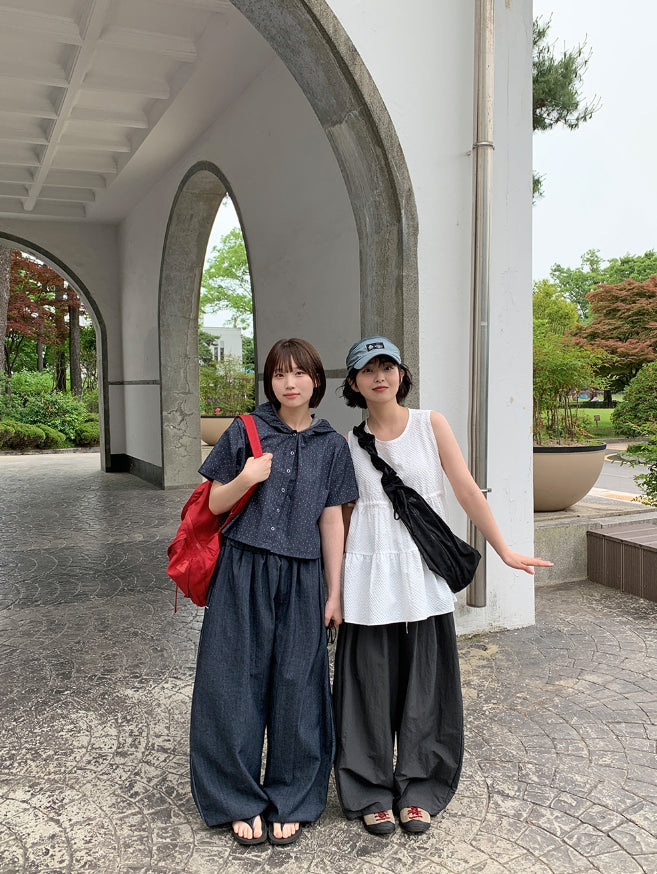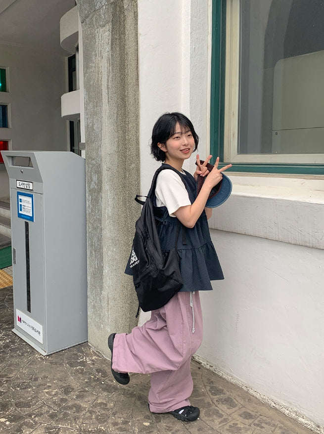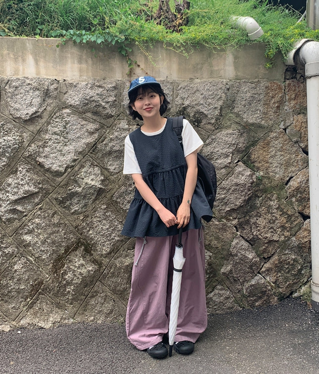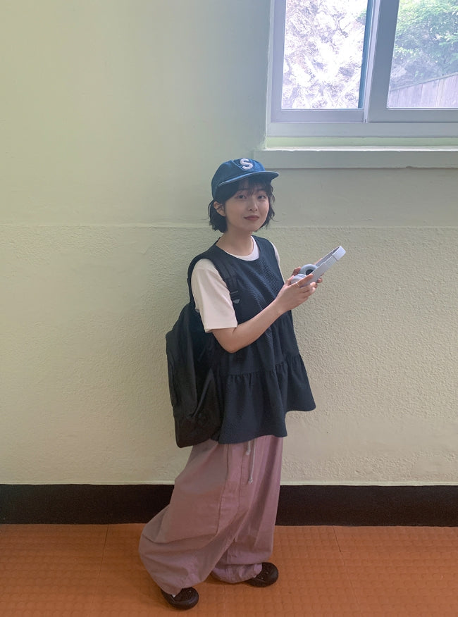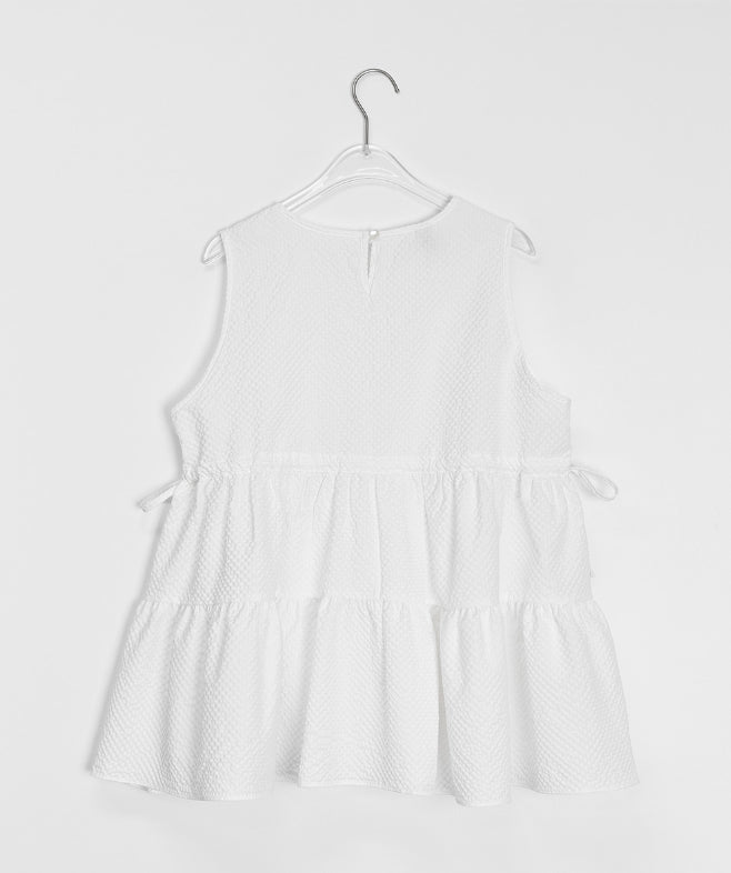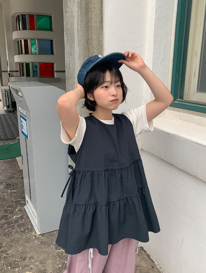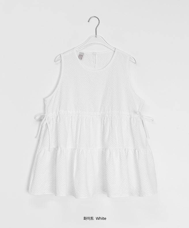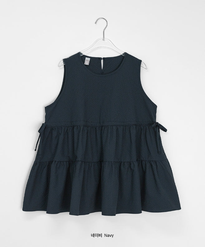 [BAONHAUS] Mesit Shirring Layered Sleeveless Blouse