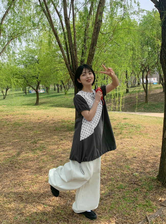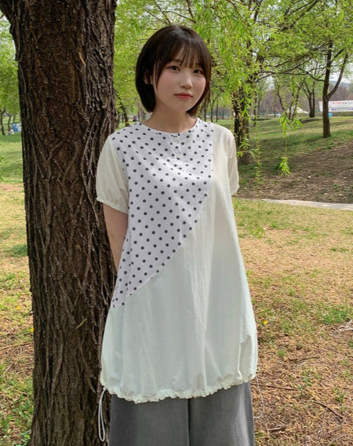 [BAONHAUS]ミルソッドドットカラーナイロンミニワンピース