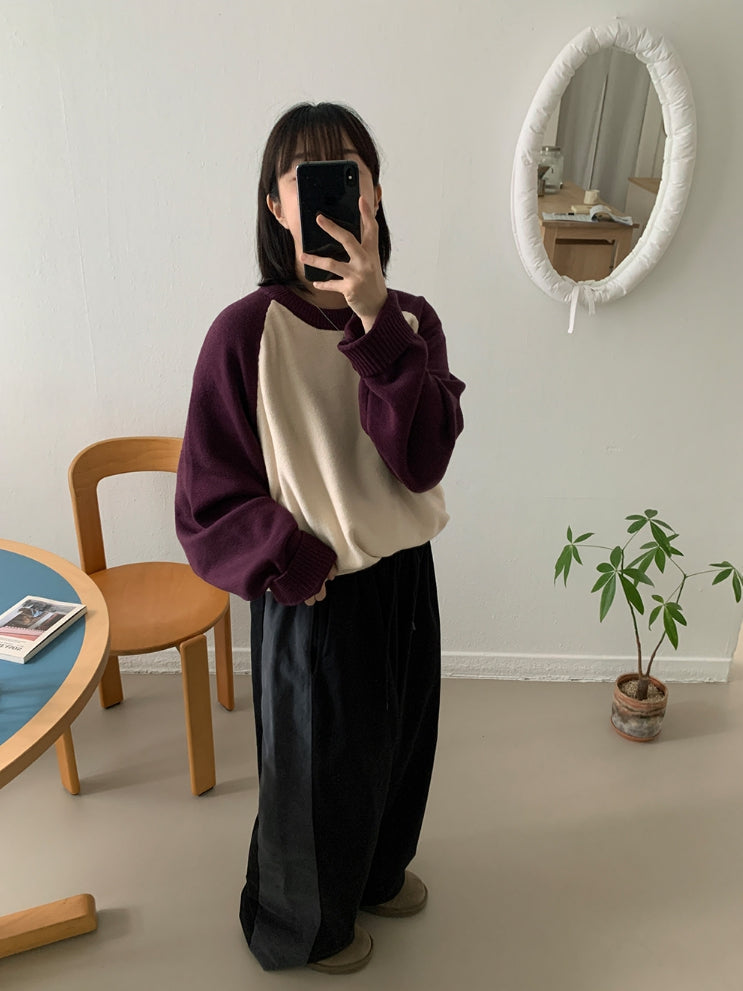 [BAONHAUS] Mutent color combination string banding brushed pants