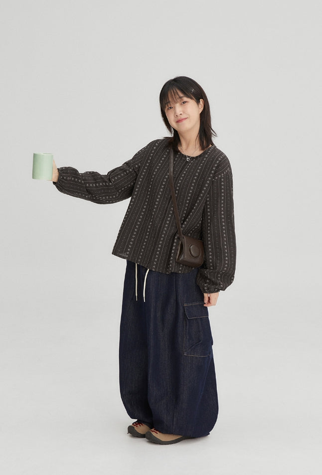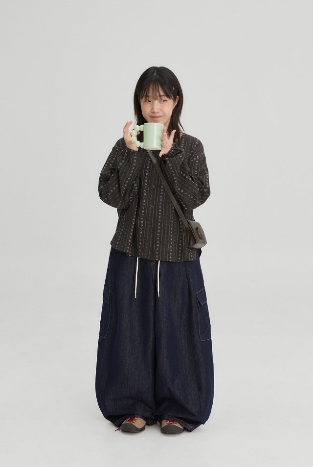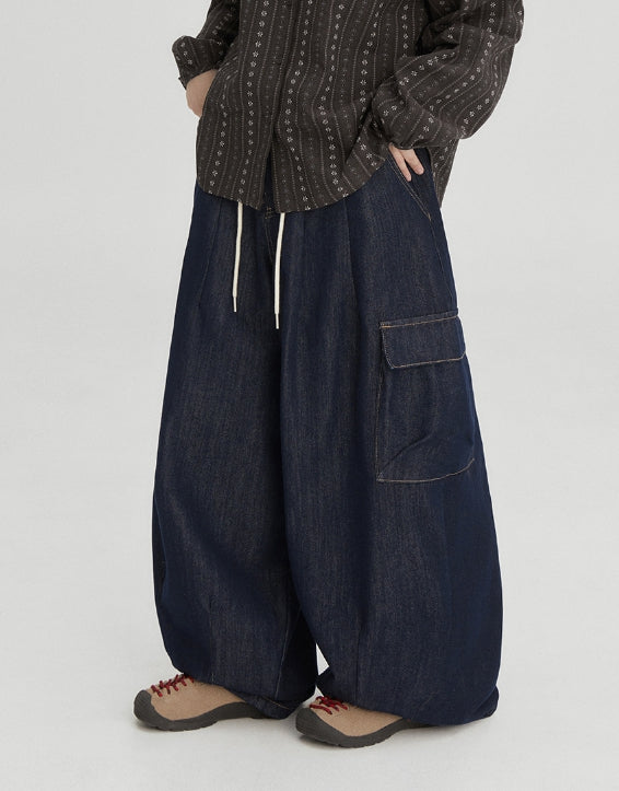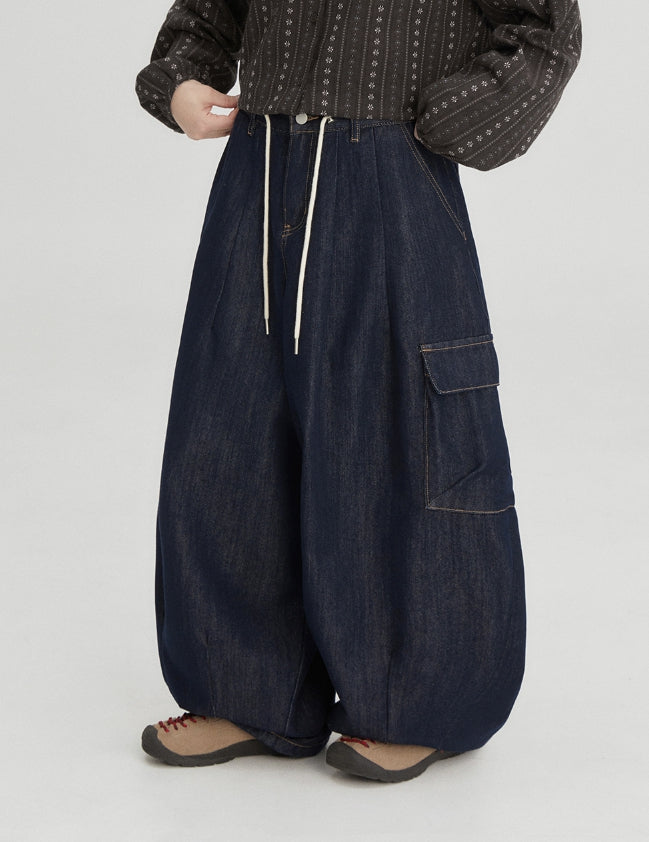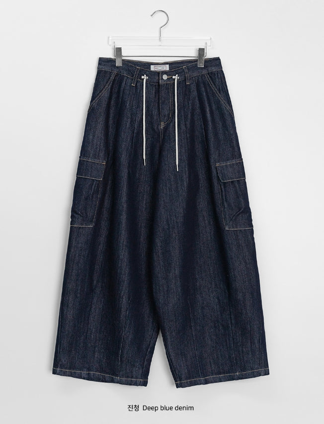 [BAONHAUS] Nemin string cargo non-fade denim pants