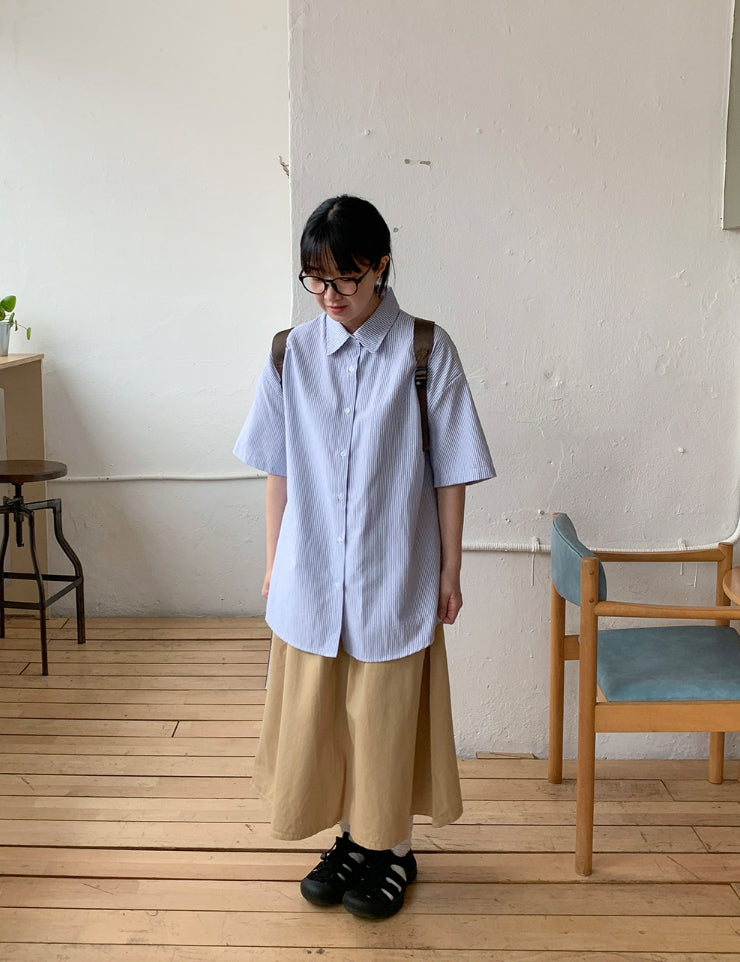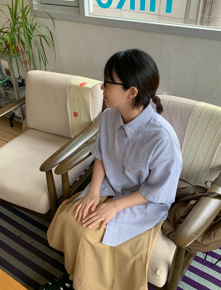 [BAONHAUS]ノキアストライプオーバー半袖シャツ