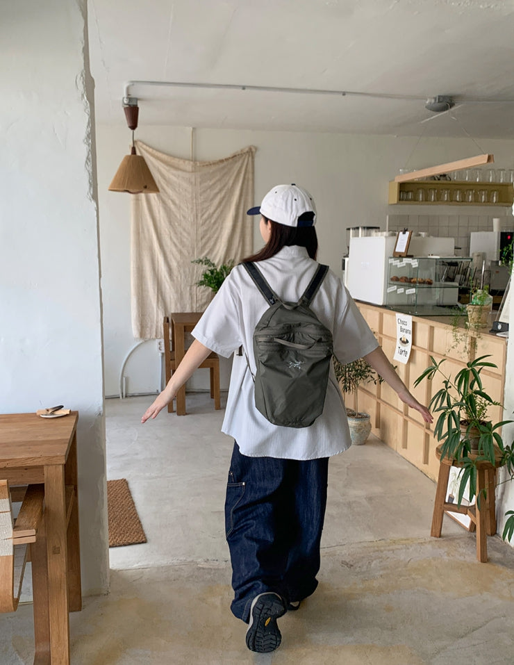 [BAONHAUS] Nokia Stripe Over Short Sleeve Shirt