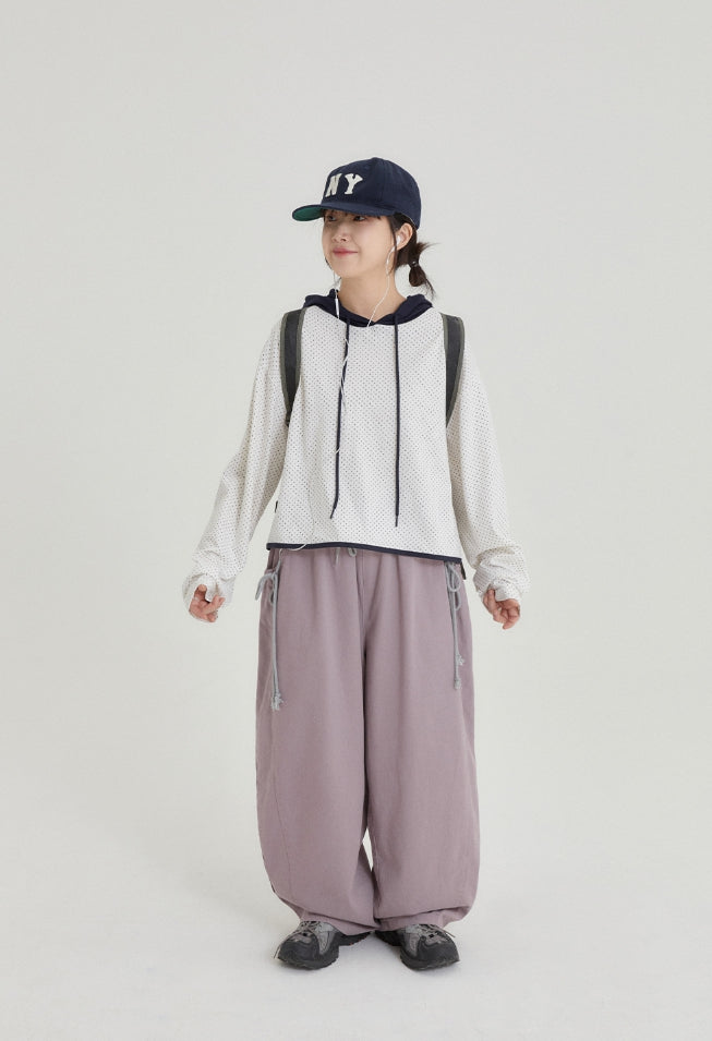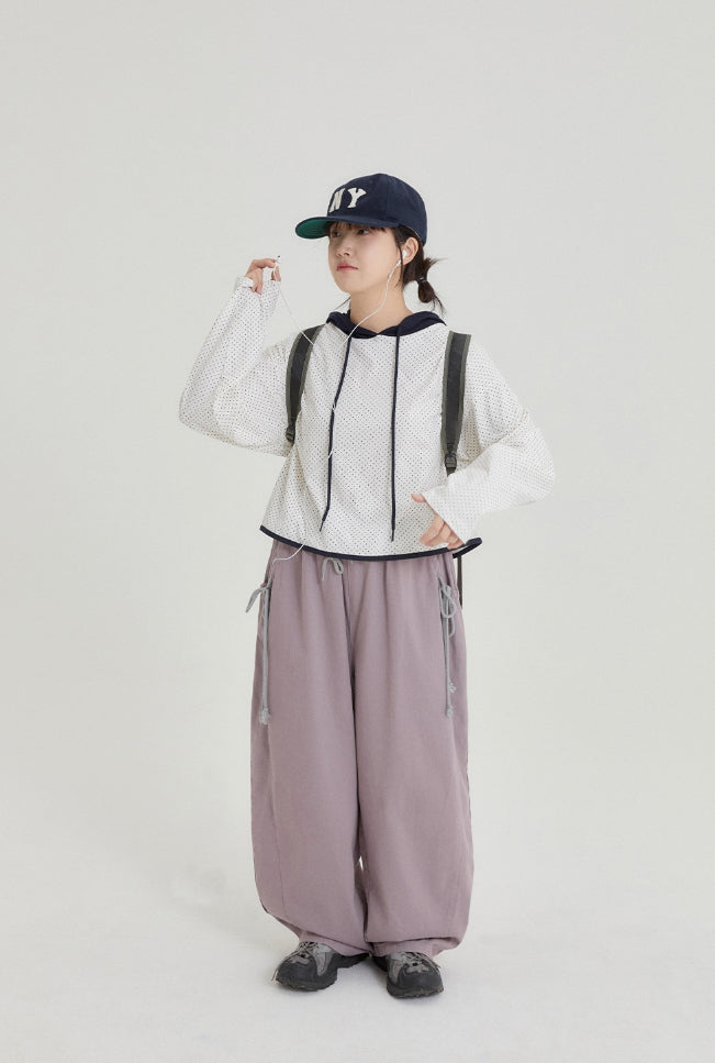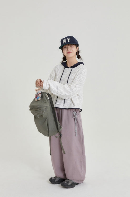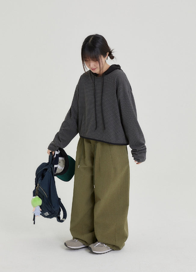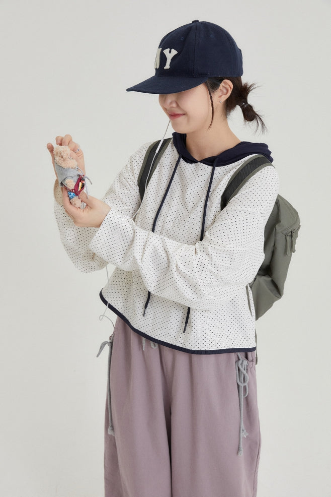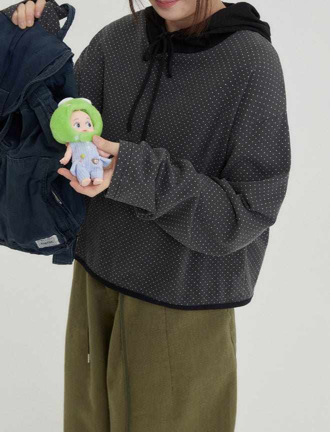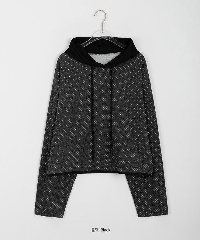 [BAONHAUS] Notive Dot Semi Crop Color Matching Hoodie