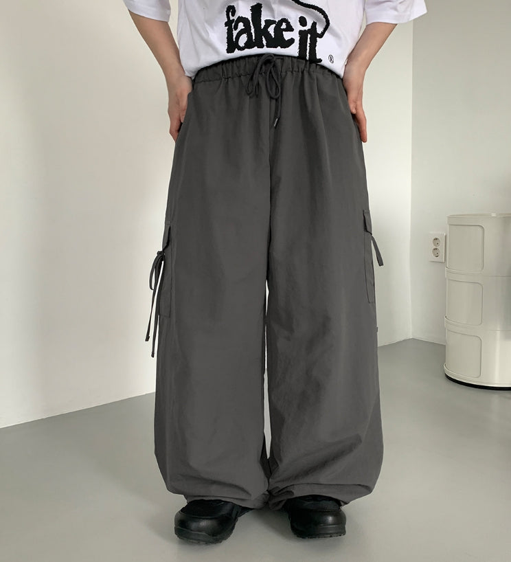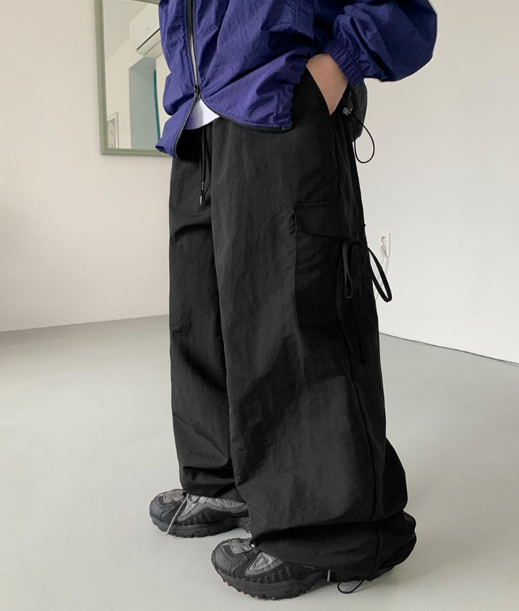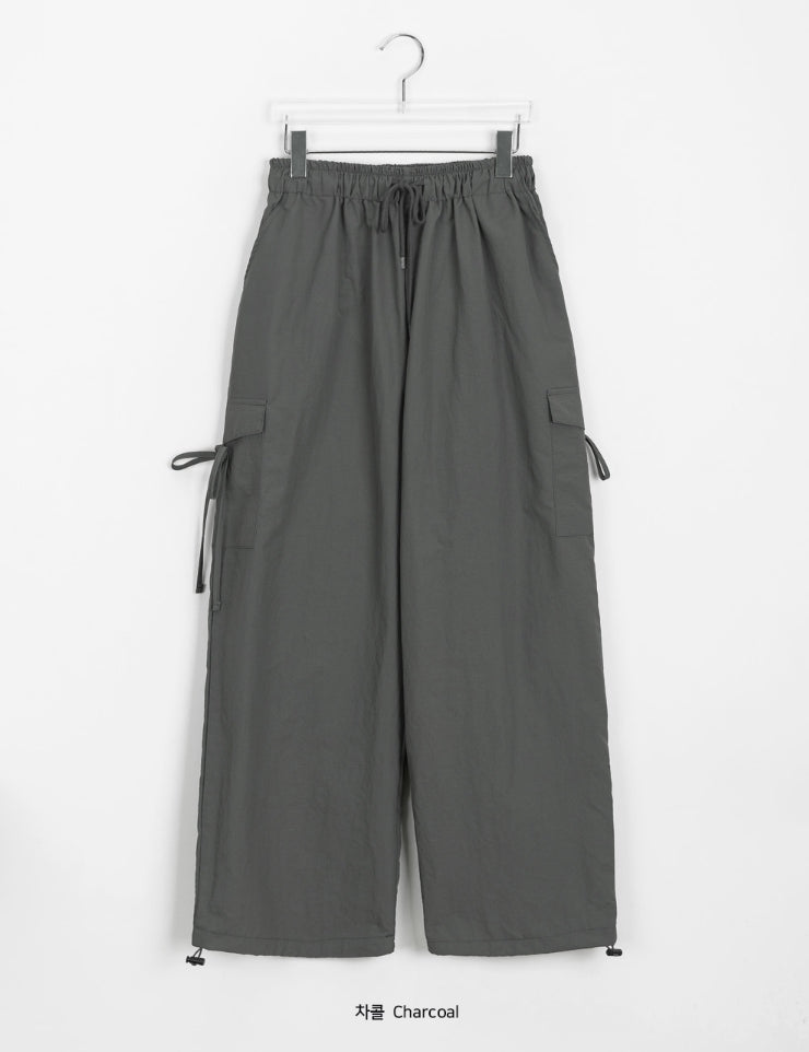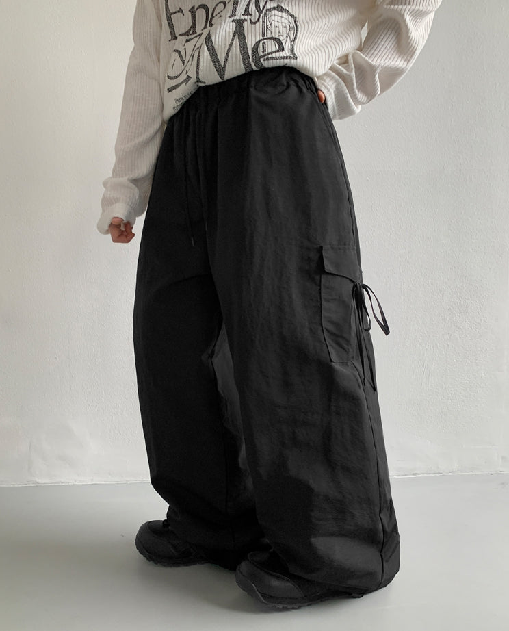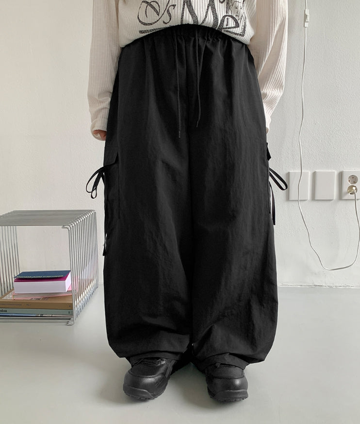 [BAONHAUS] Nylon Cargo Ribbon Bending Pants
