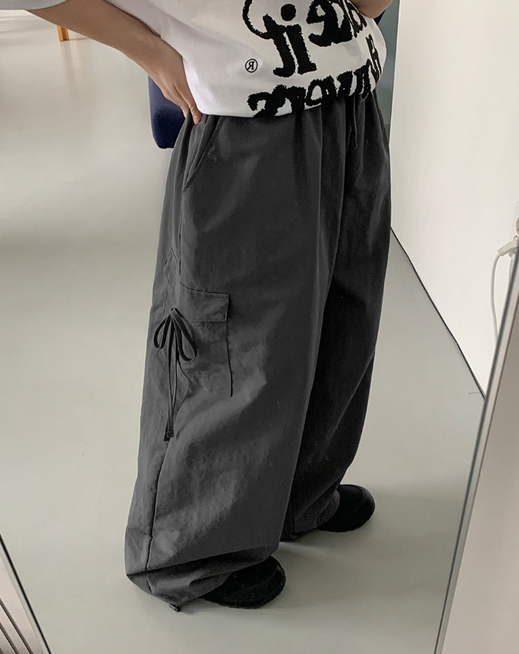 [BAONHAUS] Kioru Nylon Cargo Ribbon Bending Pants