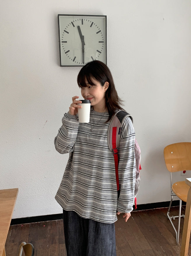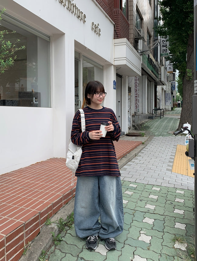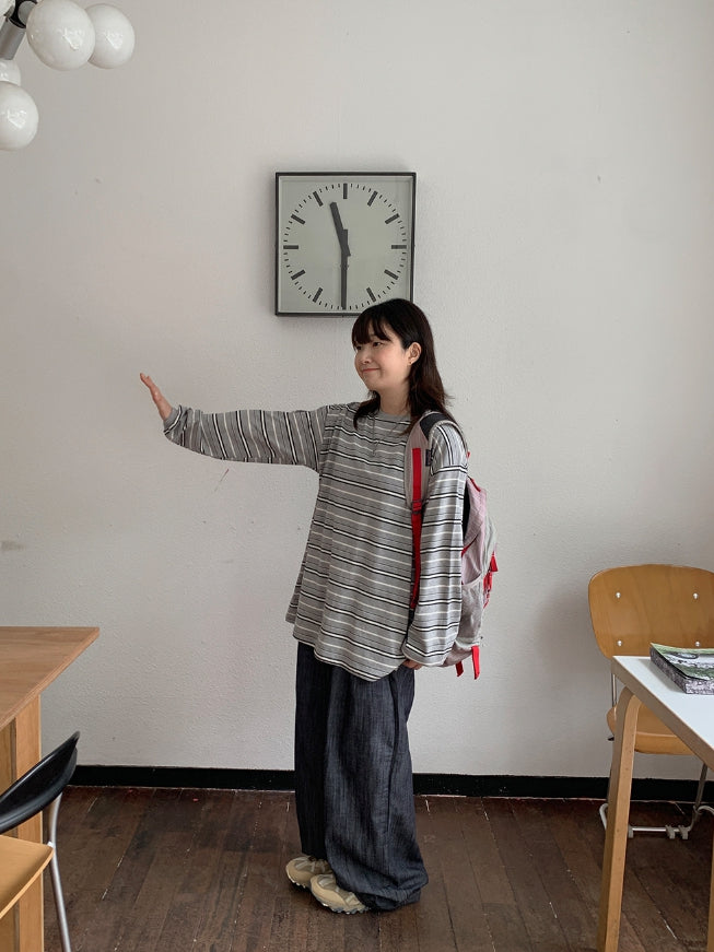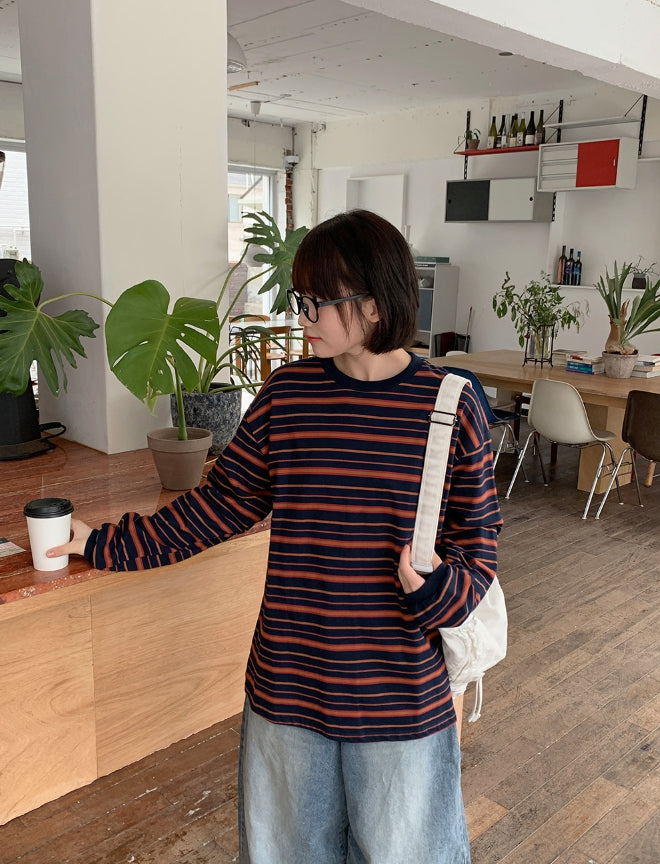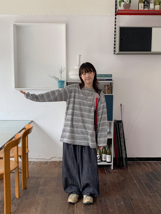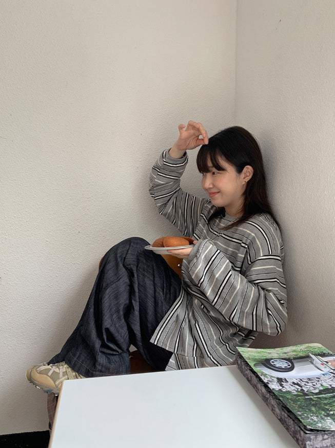 [BAONHAUS] Orua Stripe Boxy Long Sleeve Tee