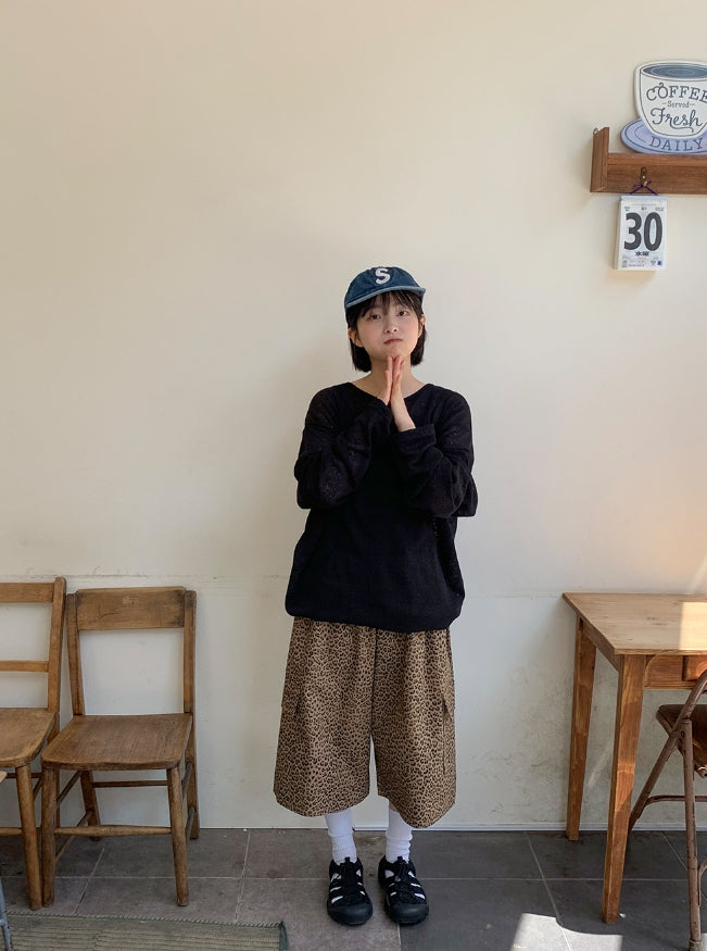 [BAONHAUS] Pdel Leopard Banding Bermuda Cargo Pants