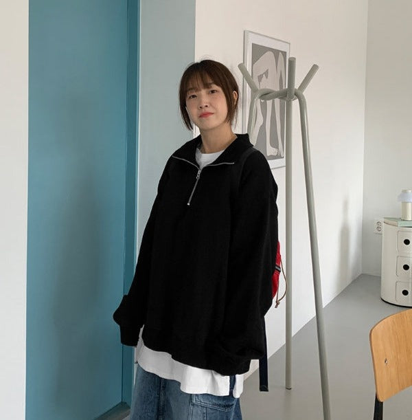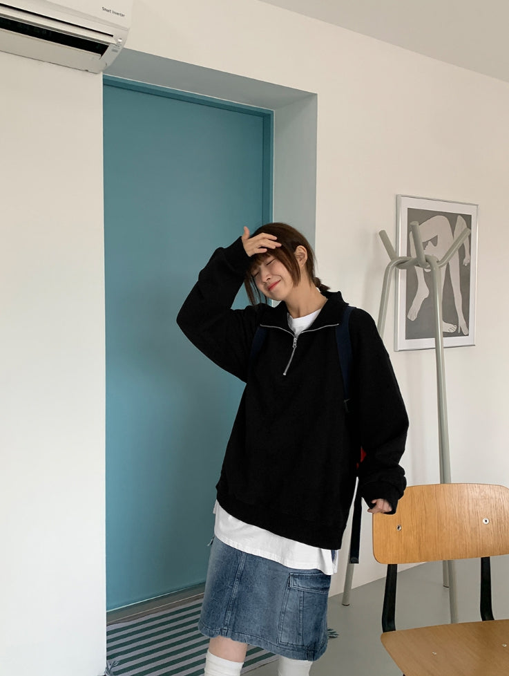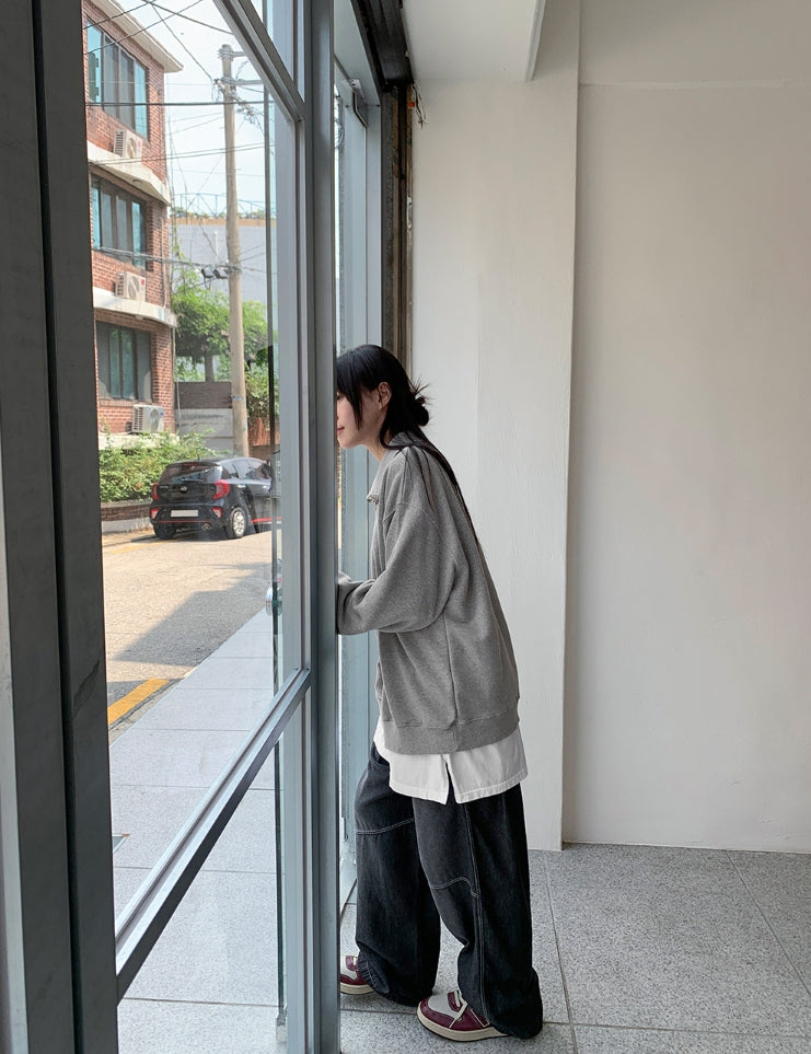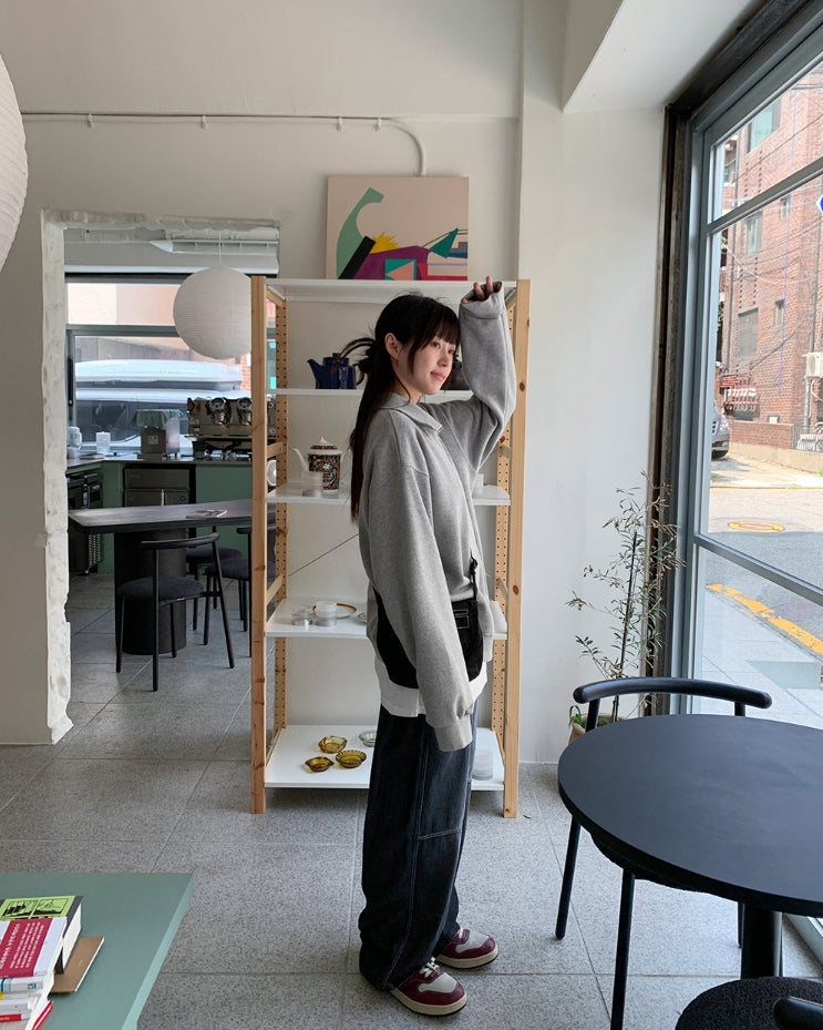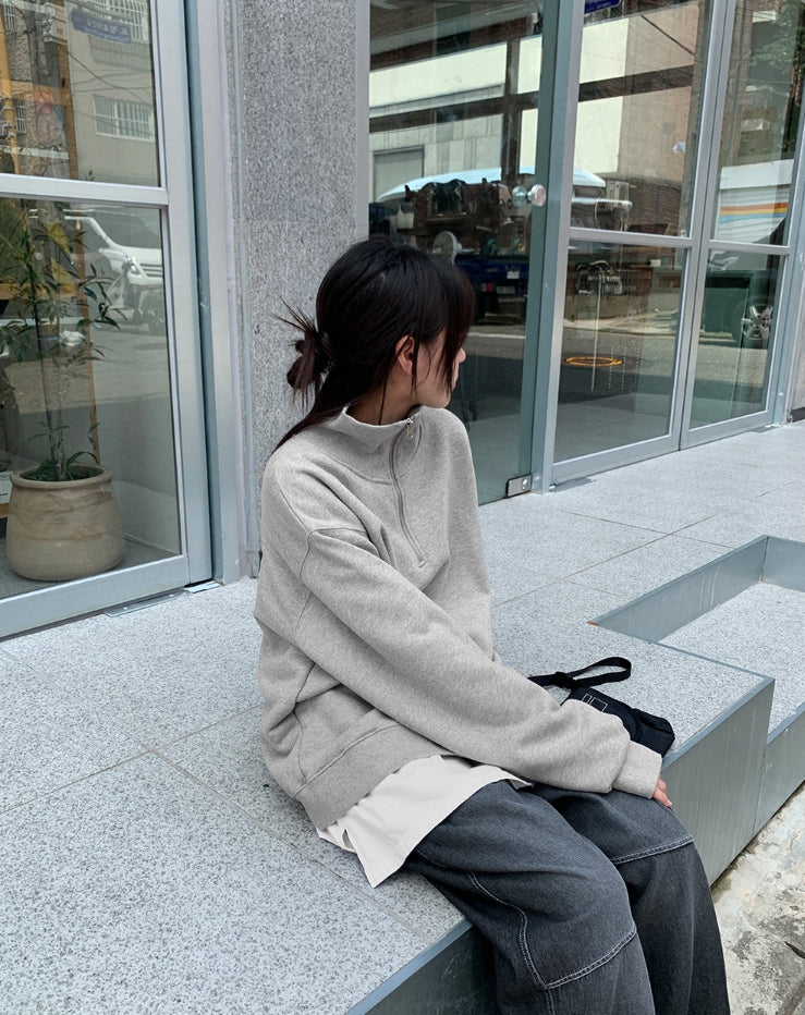 [BAONHAUS]ピモエハーフジップアップアノラックオーバースウェットシャツ