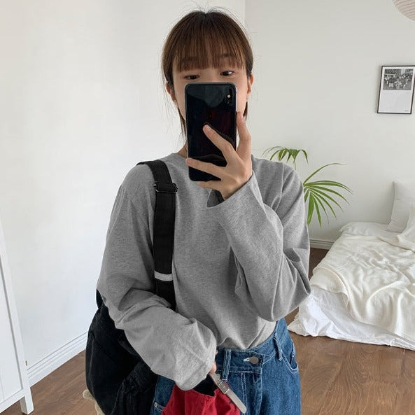 [BAONHAUS]ピンボールサイズコットンラウンド長袖Tシャツ