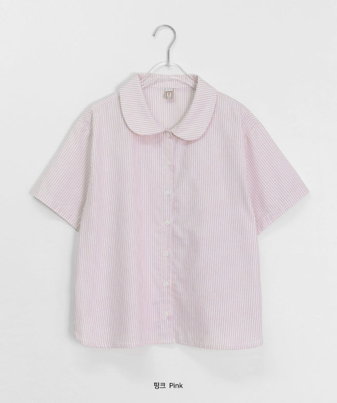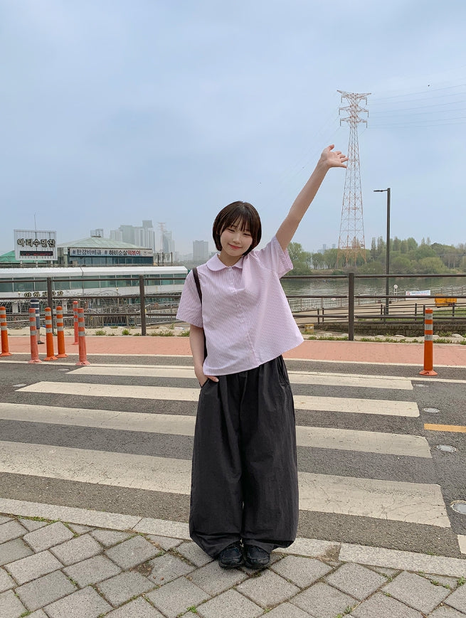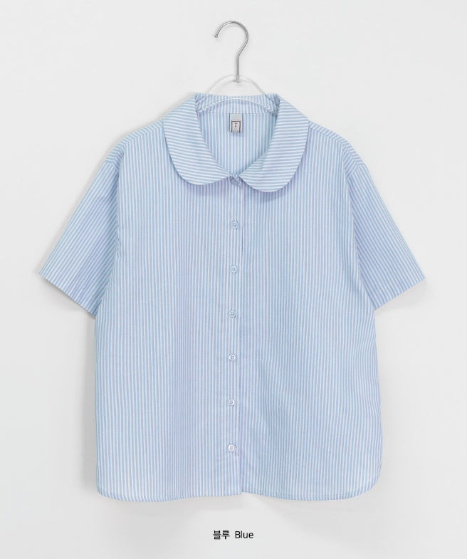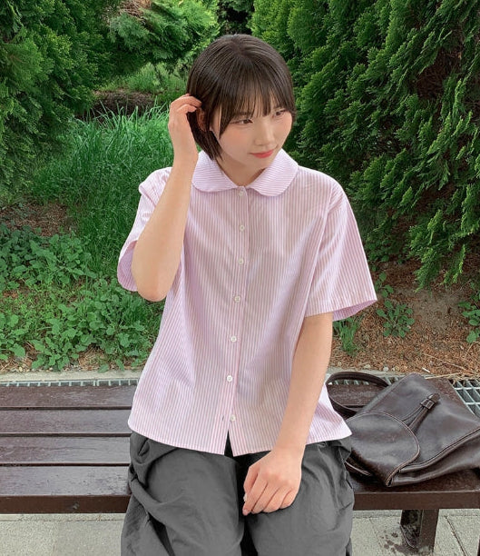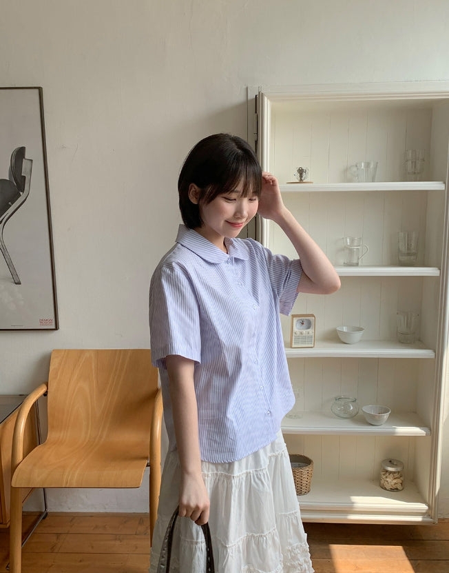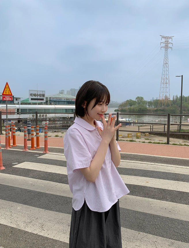 [BAONHAUS] Pohill Stripe Short Sleeve Blouse