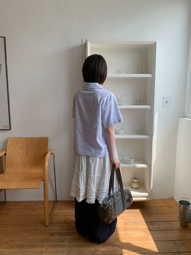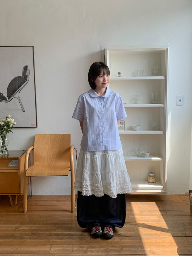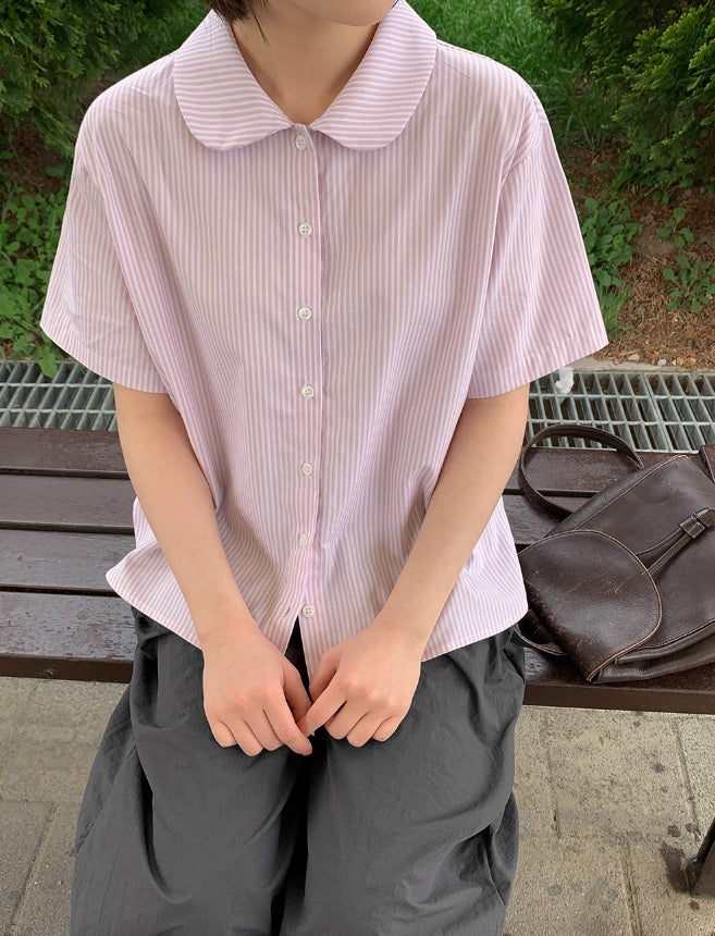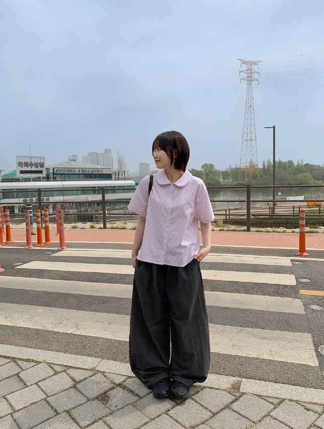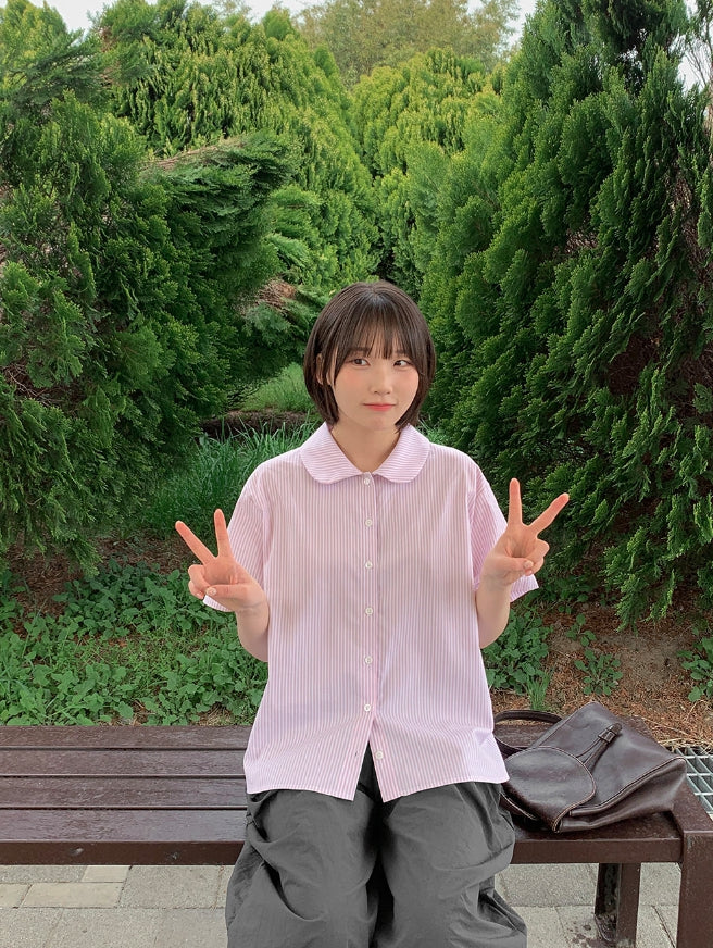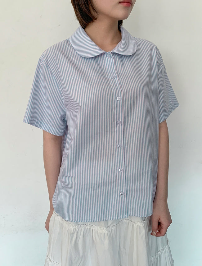 [BAONHAUS] Pohill Stripe Short Sleeve Blouse