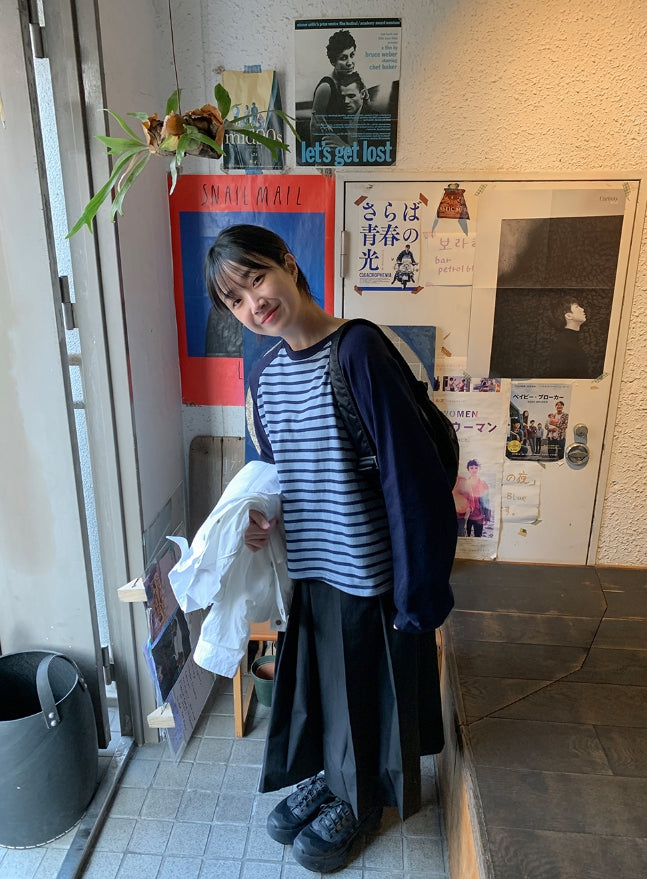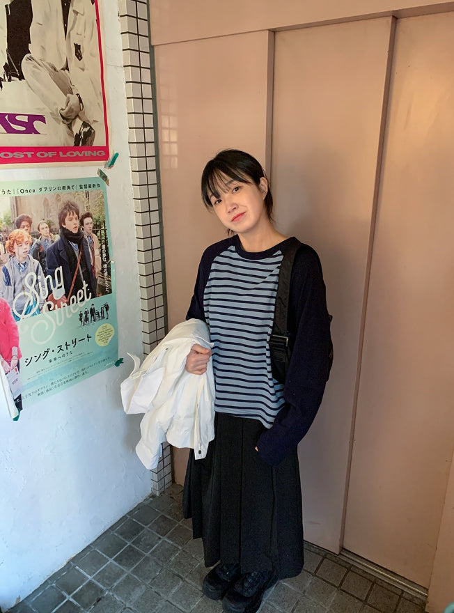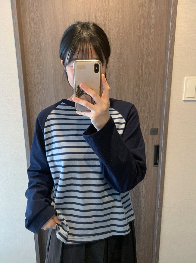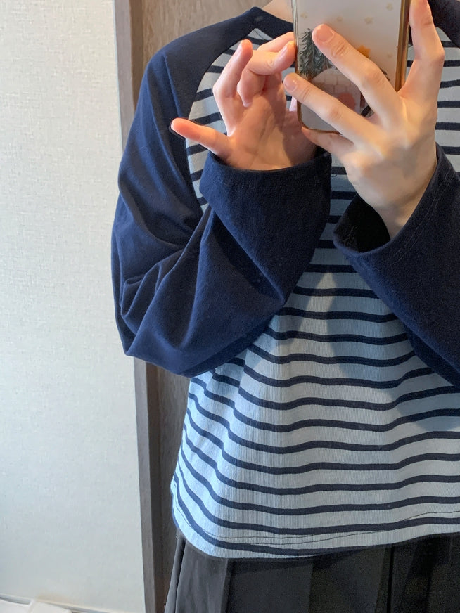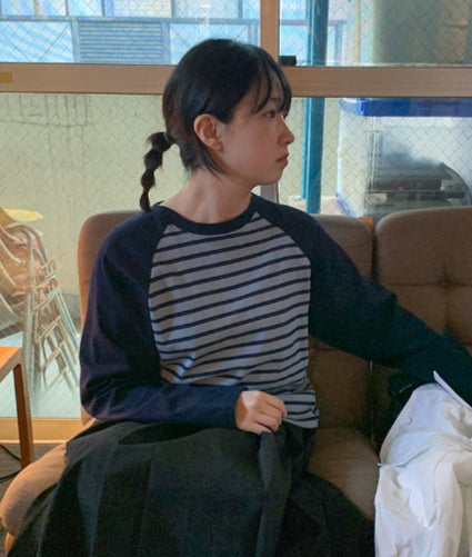[BAONHAUS] Pontry Color Matching Raglan Stripe Long Sleeve Tee