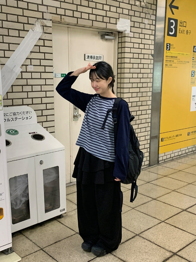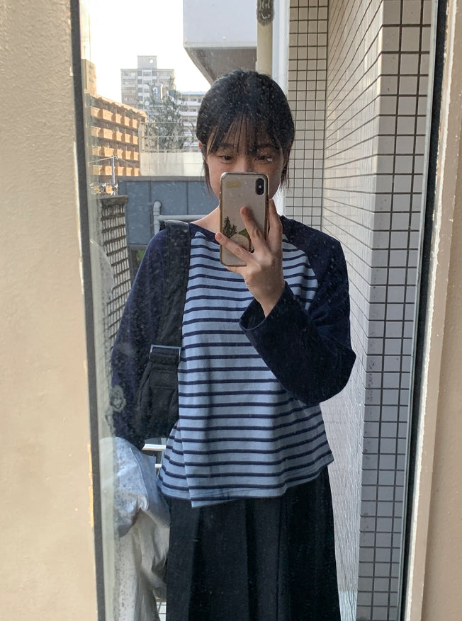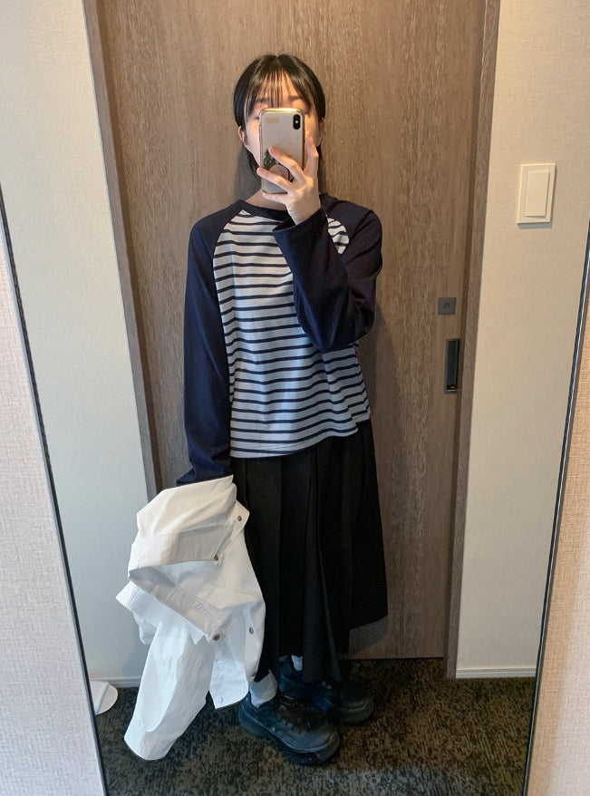 [BAONHAUS]ポントリーカラーラグランボーダー長袖Tシャツ