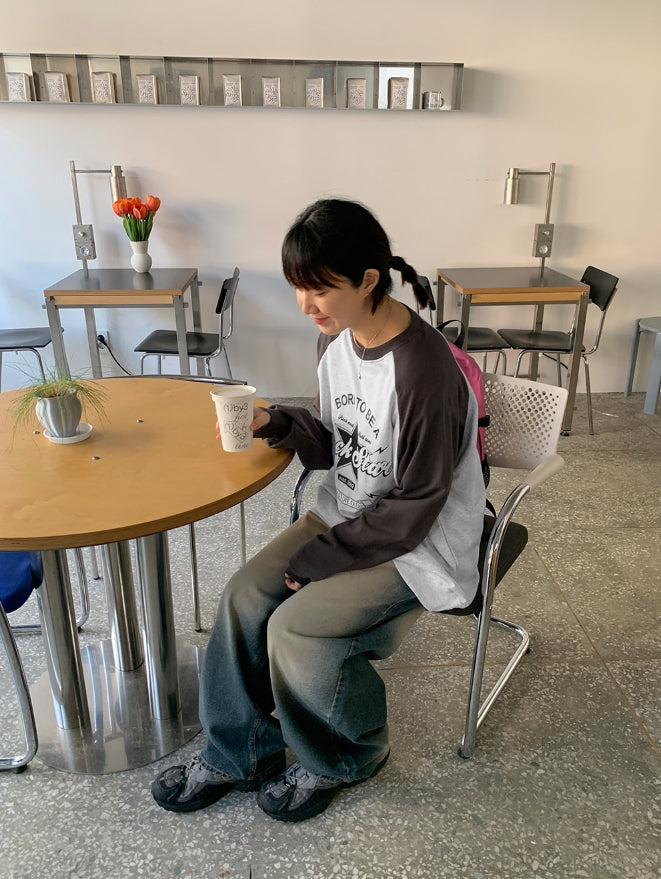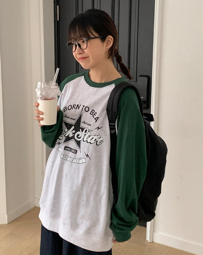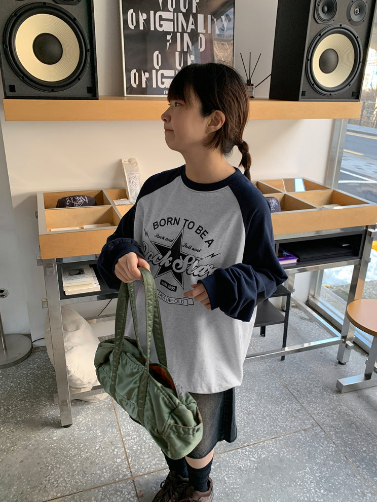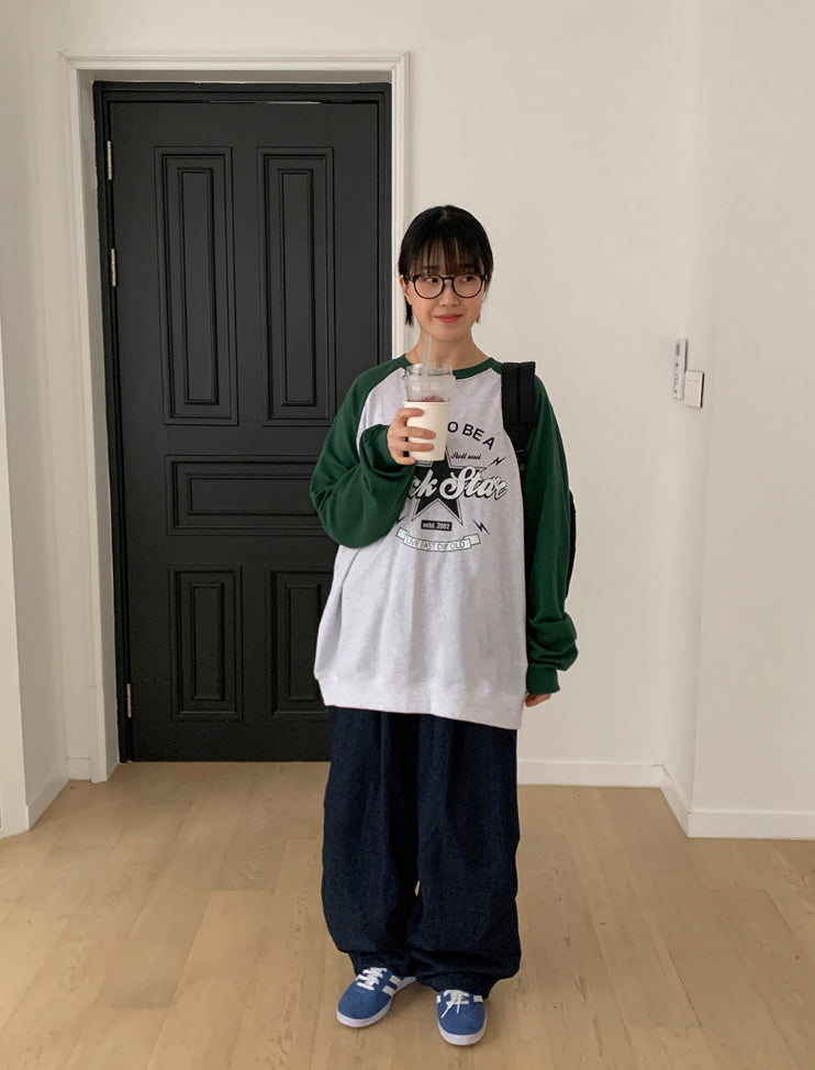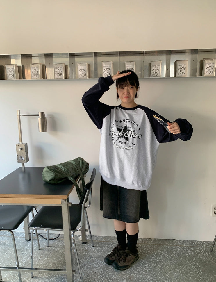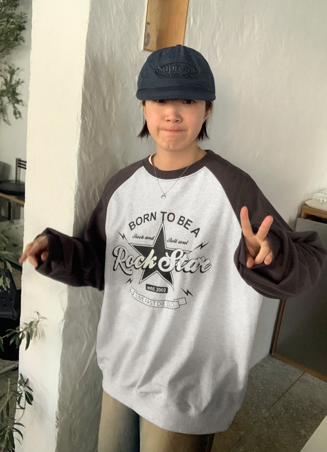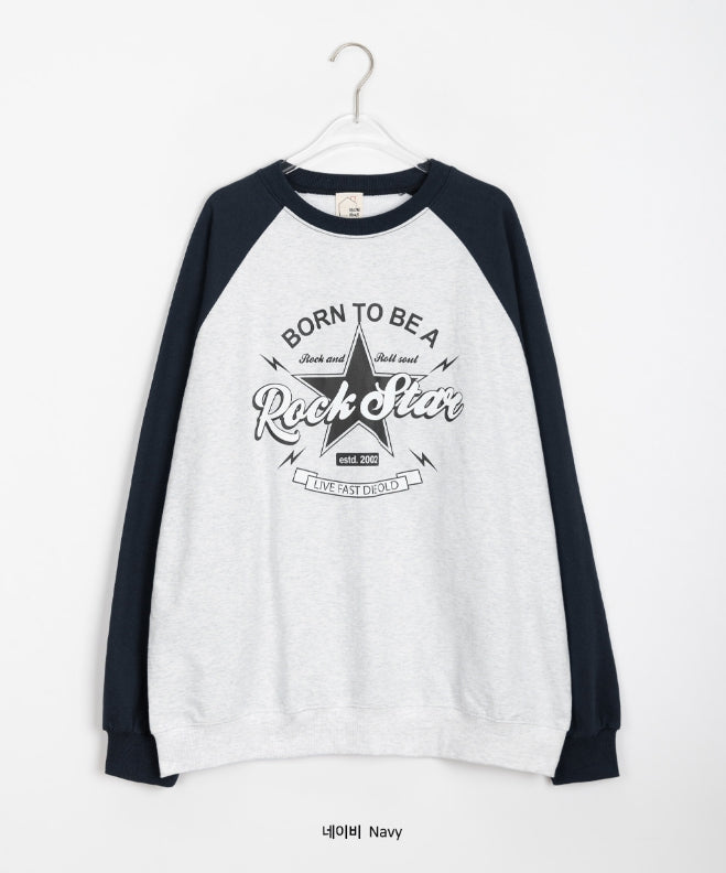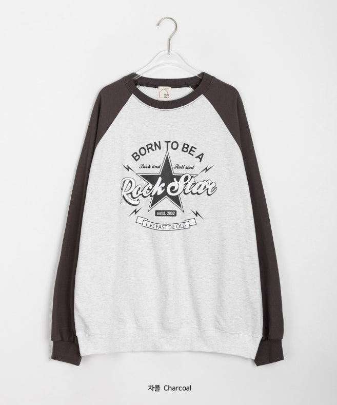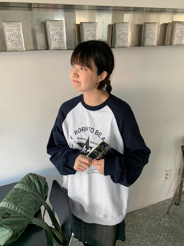 [BAONHAUS] Rally Printed Color Matching Raglan Sweatshirt