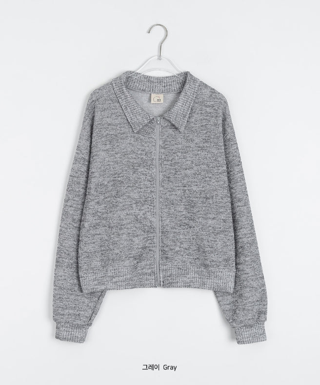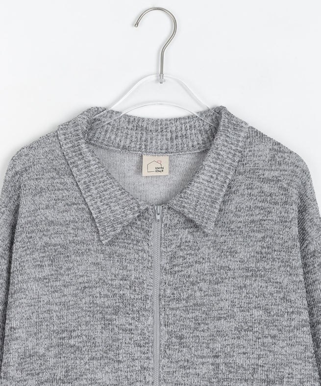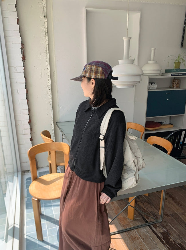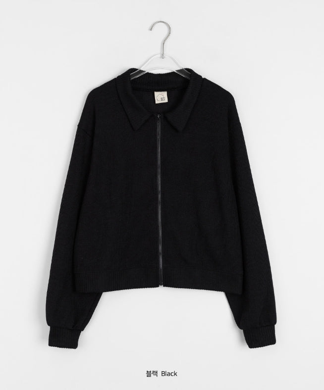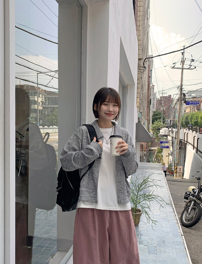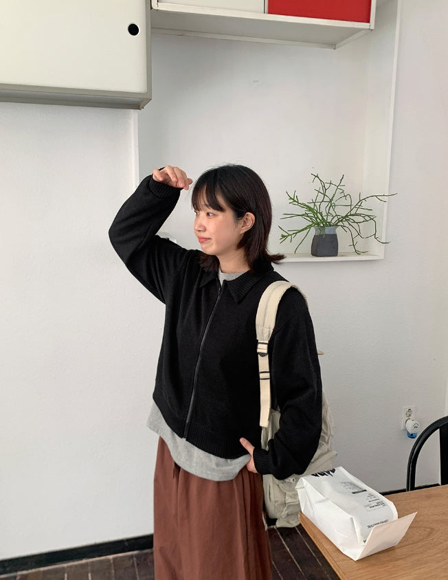 [BAONHAUS] Rikumi ribbed knit collar zip-up cardigan