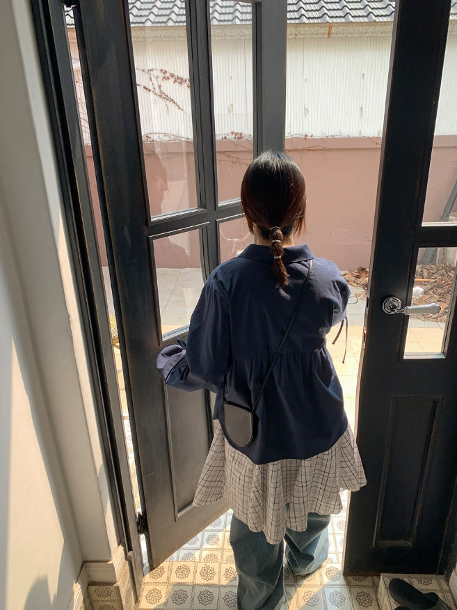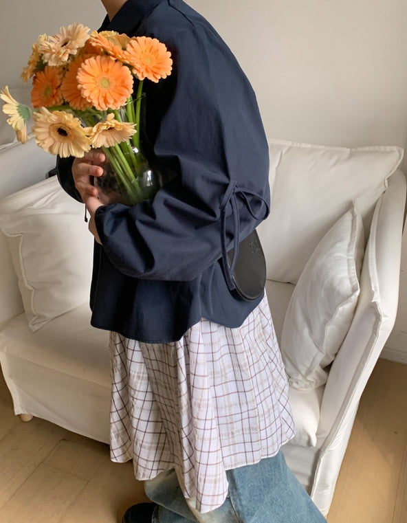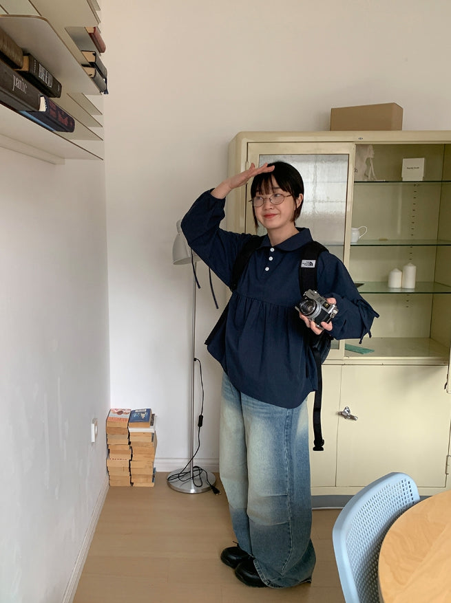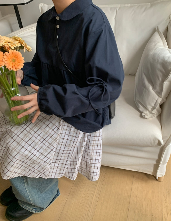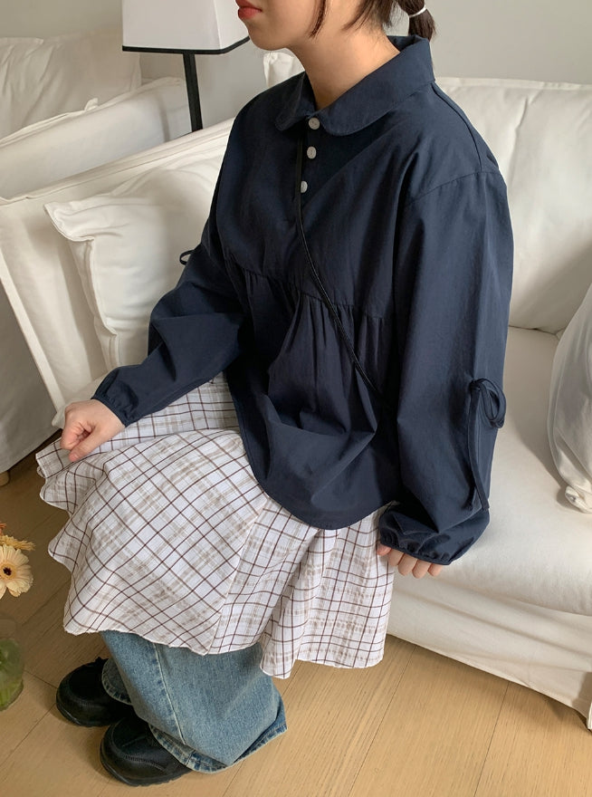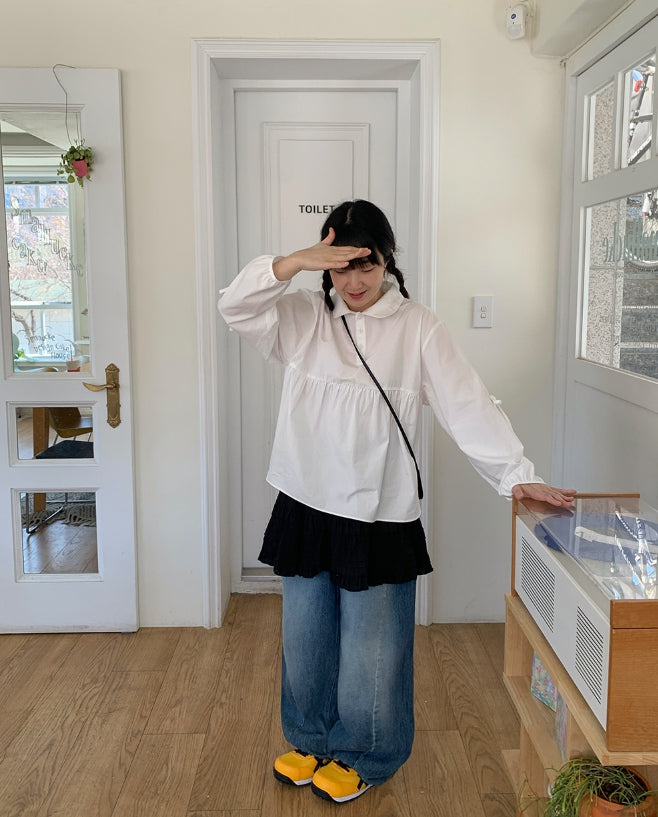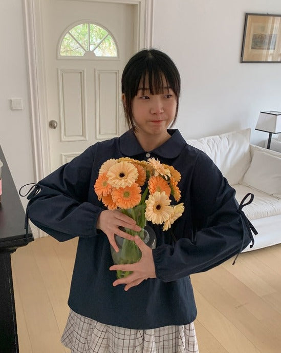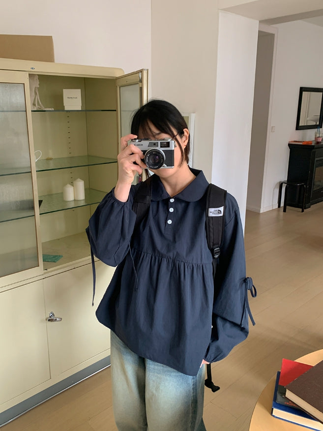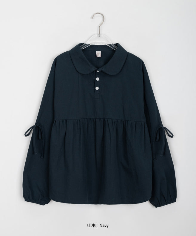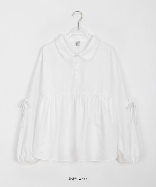 [BAONHAUS] Proni Round Collar Shirring Ribbon Blouse