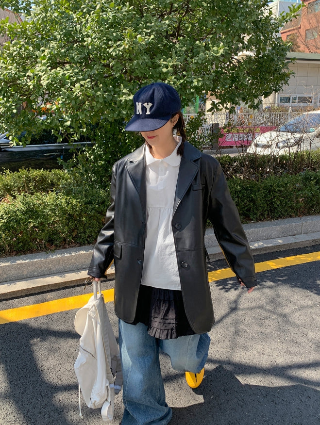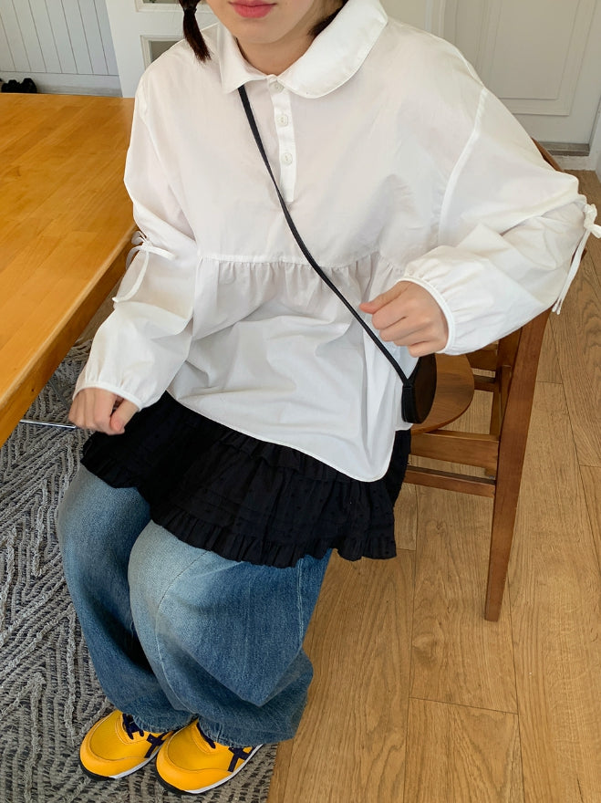 [BAONHAUS]プロニラウンド襟付きシャーリングリボンブラウス
