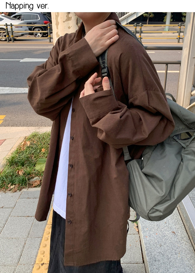 [BAONHAUS]サモルコットンオーバー長袖ピーチ起毛シャツ