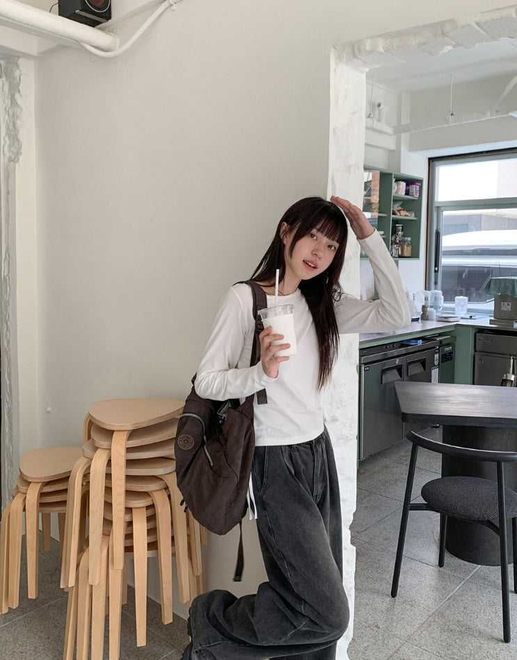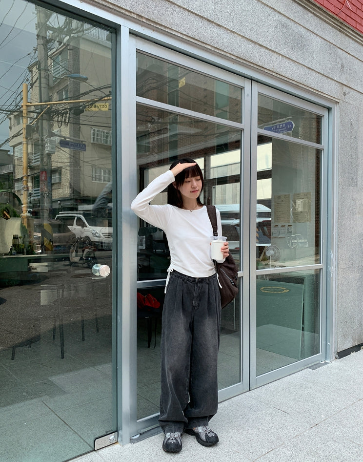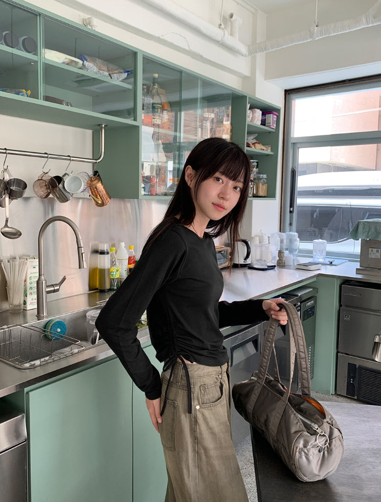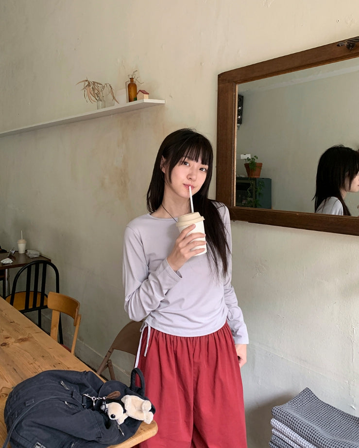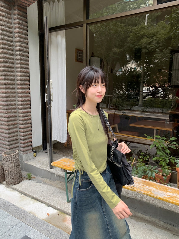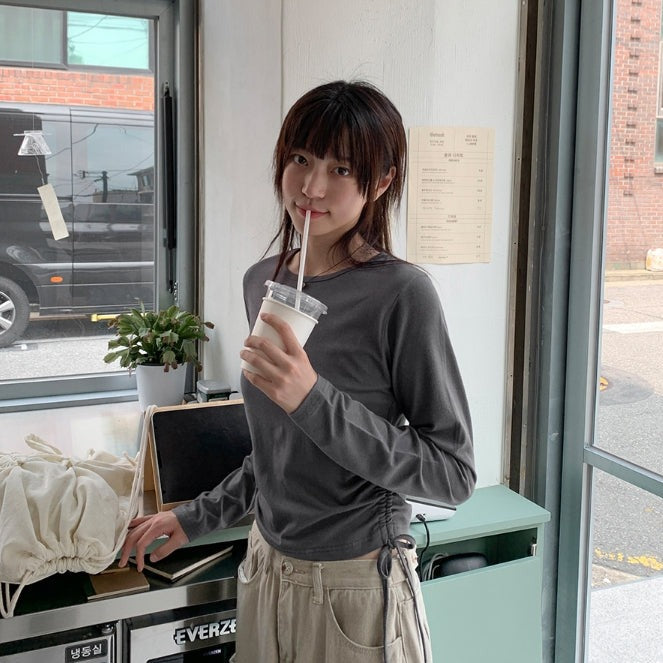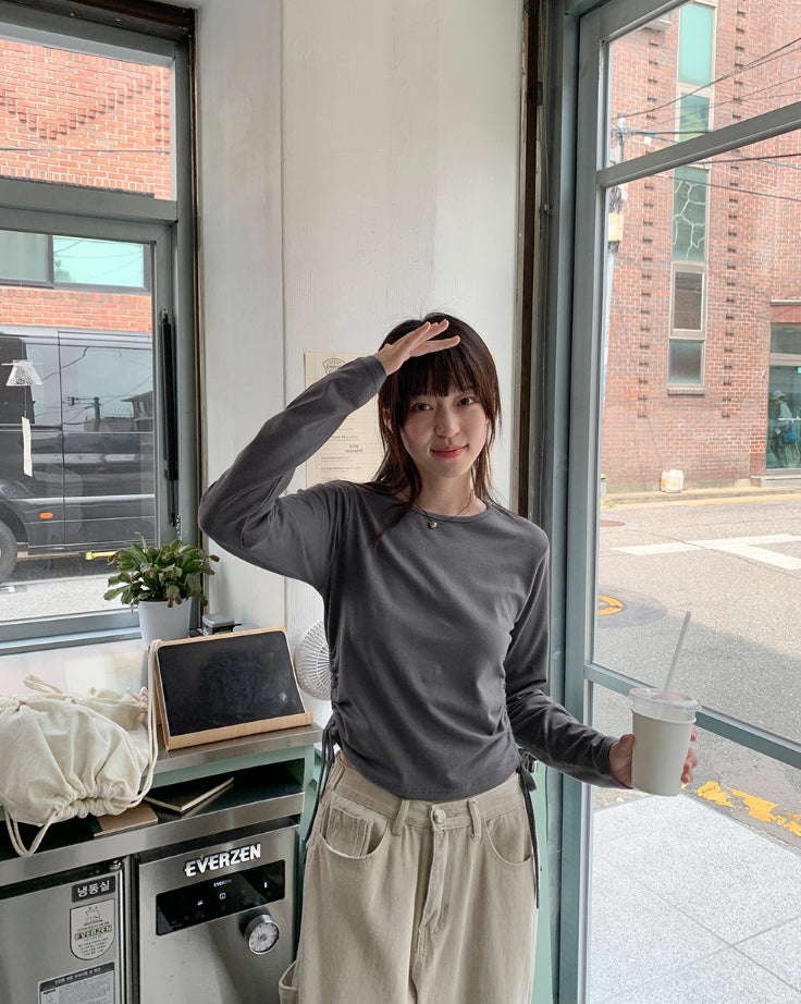 [BAONHAUS] Sane String Crop Long Sleeve Tee