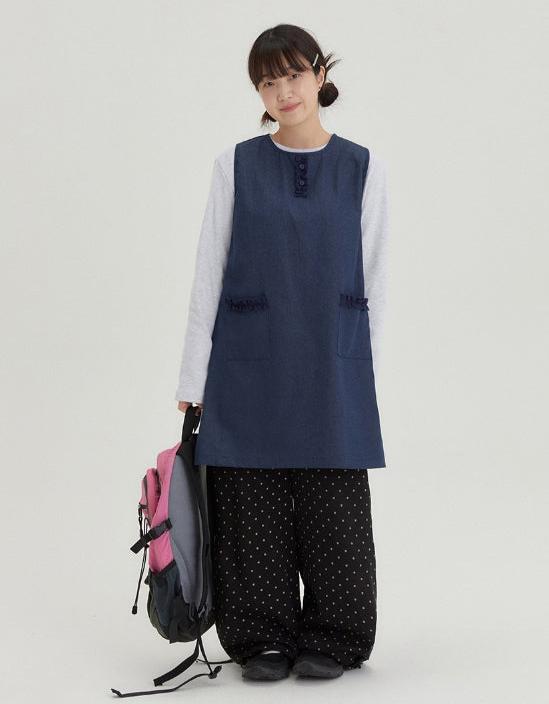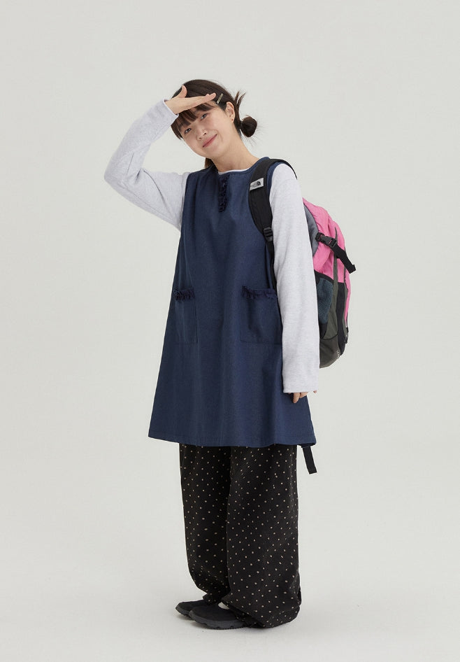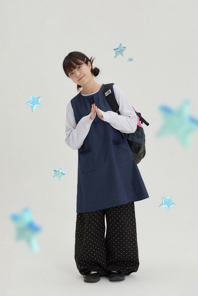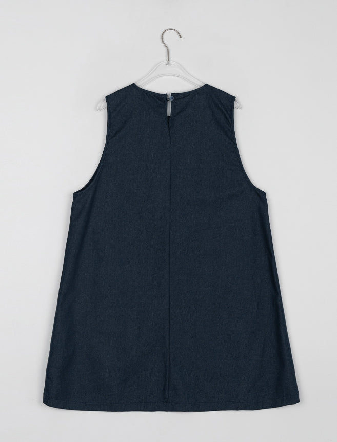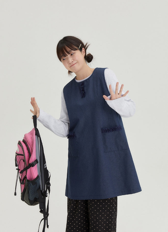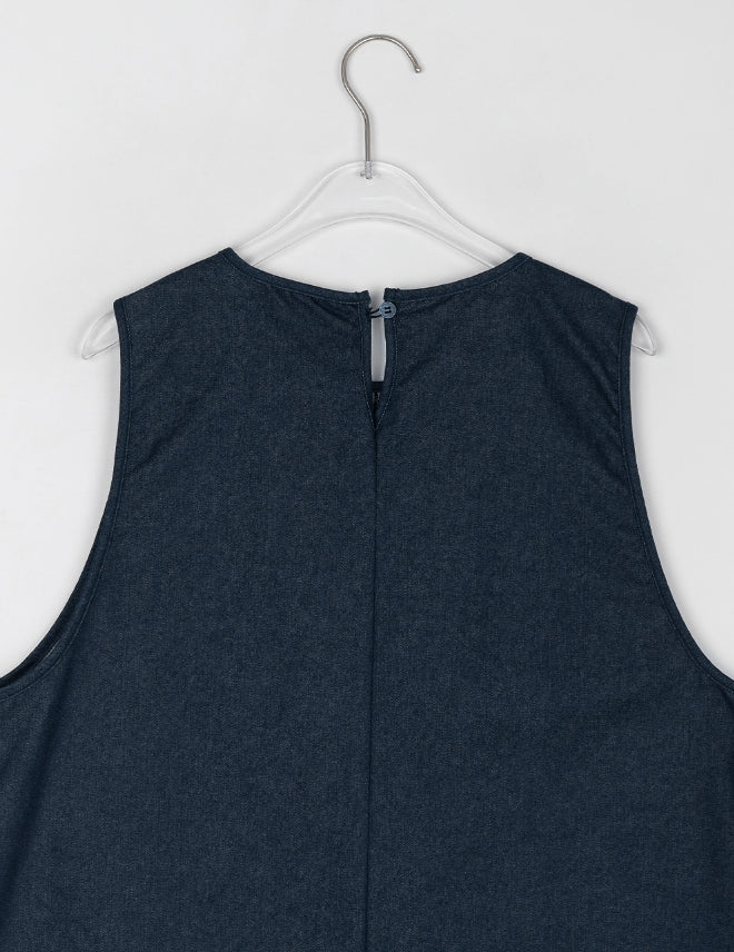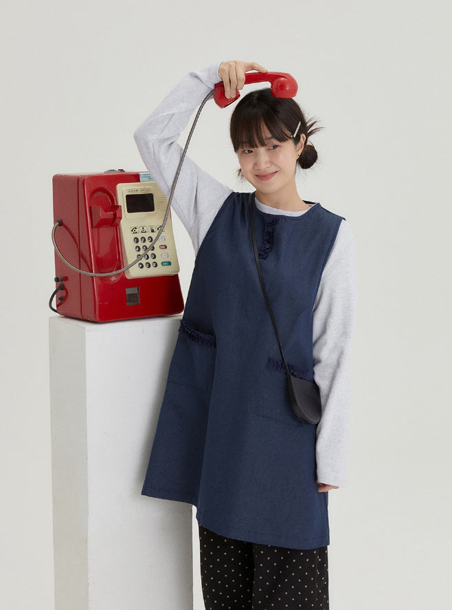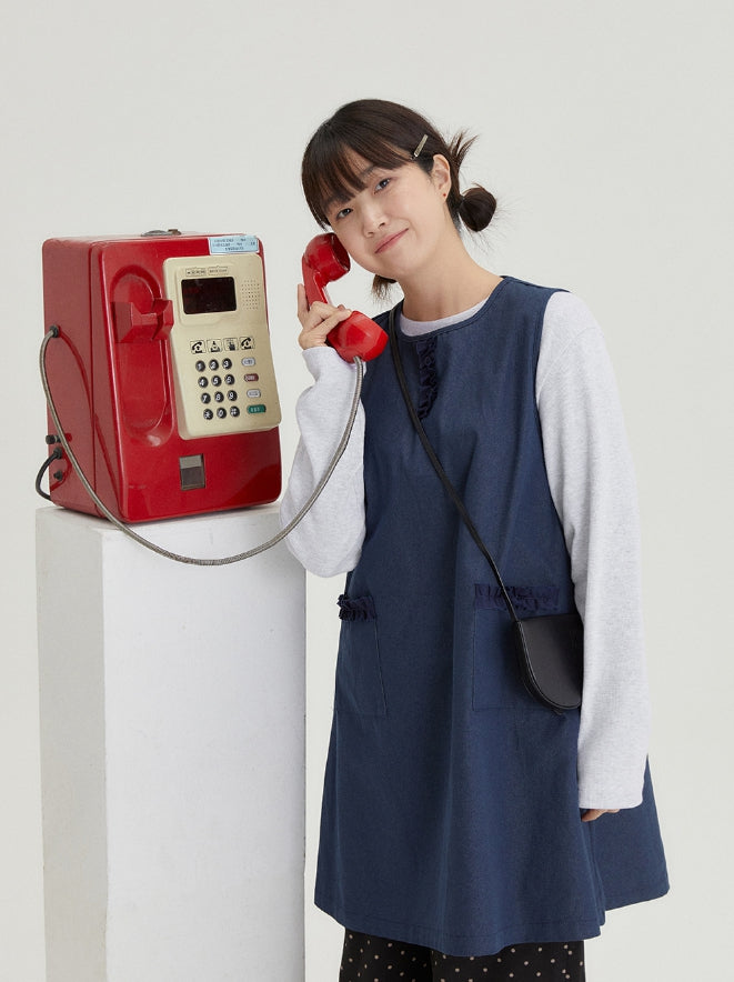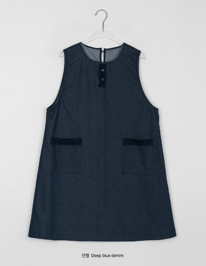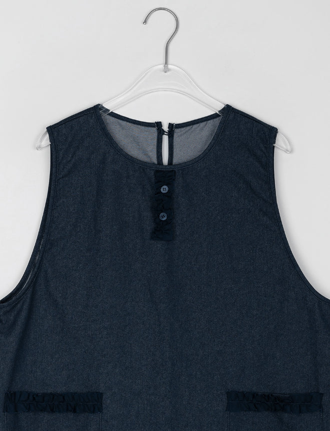 [BAONHAUS] Shuta Denim Frill Pocket Midi One Piece