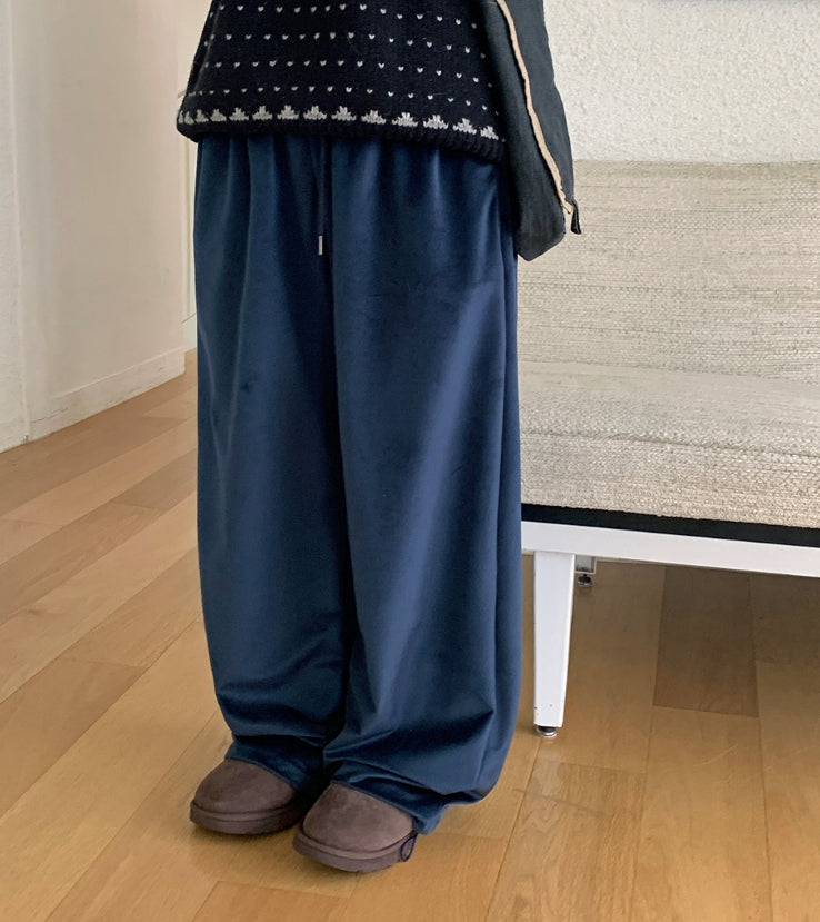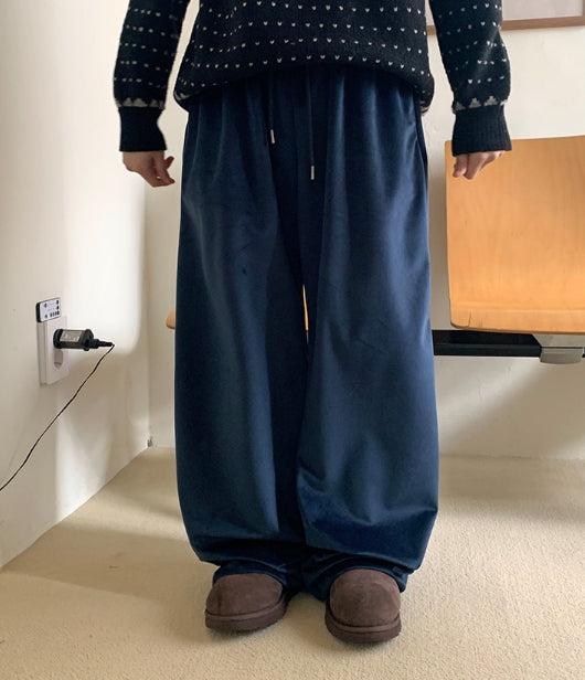 [BAONHAUS]シルモンベルベットバンディングワイドパンツ