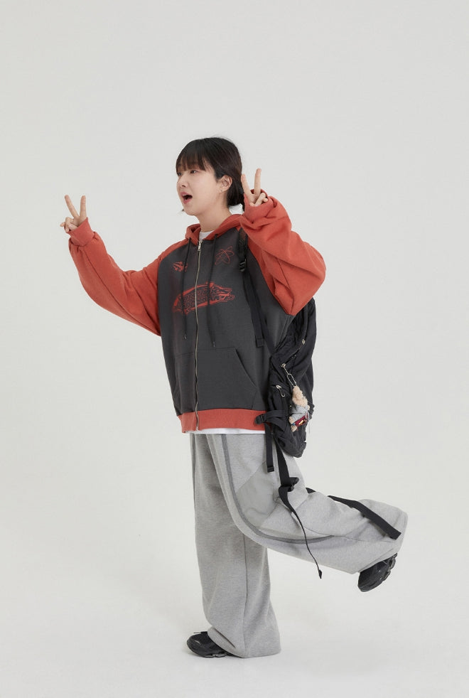 [BAONHAUS] Tomil Printing Color Matching Hood Zip-Up